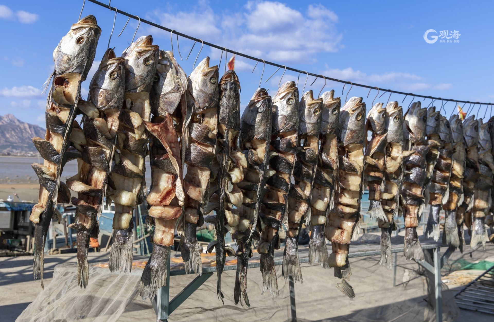- 入冬后天气转冷气候干燥,眼下正是一年中最适合晒鱼的时节。在崂山区王哥庄街道港东社区,成排成串晾晒的甜晒鱼,通过阳光的久照,油脂由内而外慢慢溢出,肉质紧实口感细腻,是冬日里的绝佳美食。(观海特约摄影师 刘明元 | 责任编辑 樊蓉)