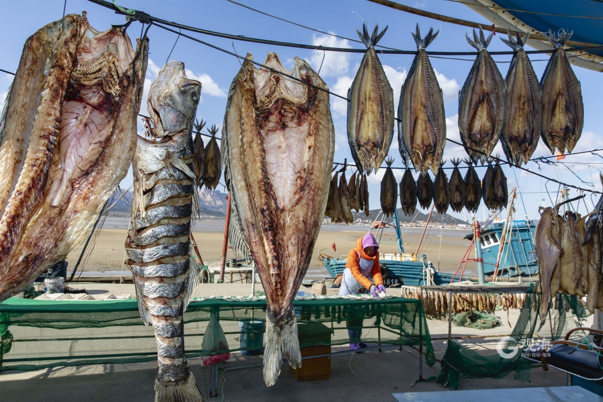 - 一条条甜晒鱼在海风的吹拂下肉质越发紧实。