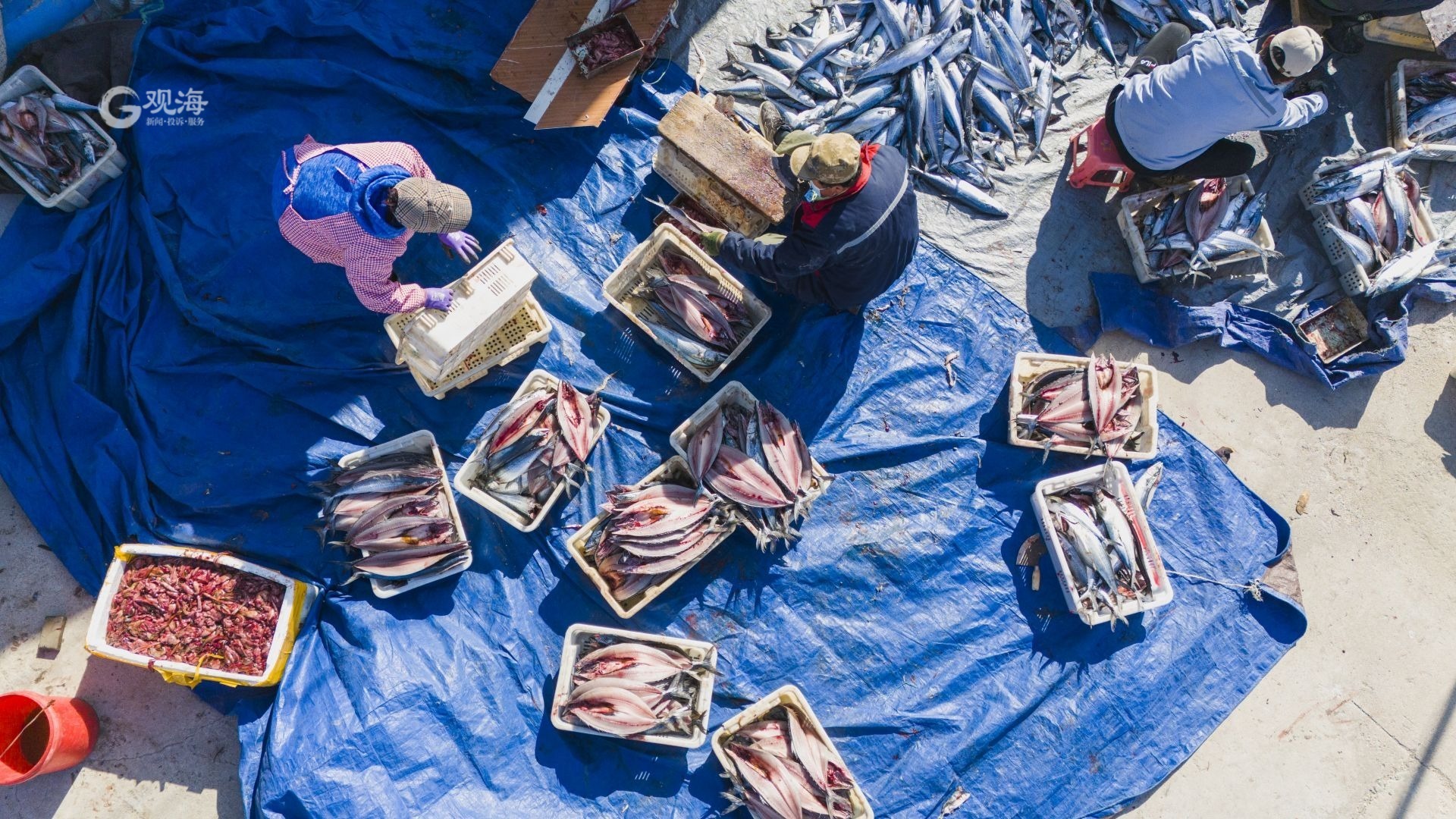 - 渔民们用水清洗、去除内脏,再集中晾晒。