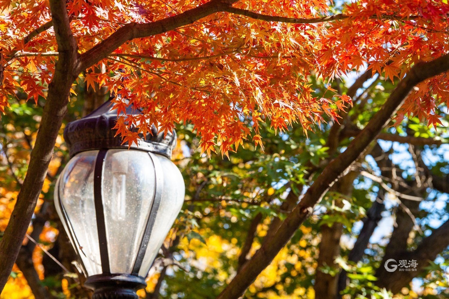 - 枫树,红得似火。