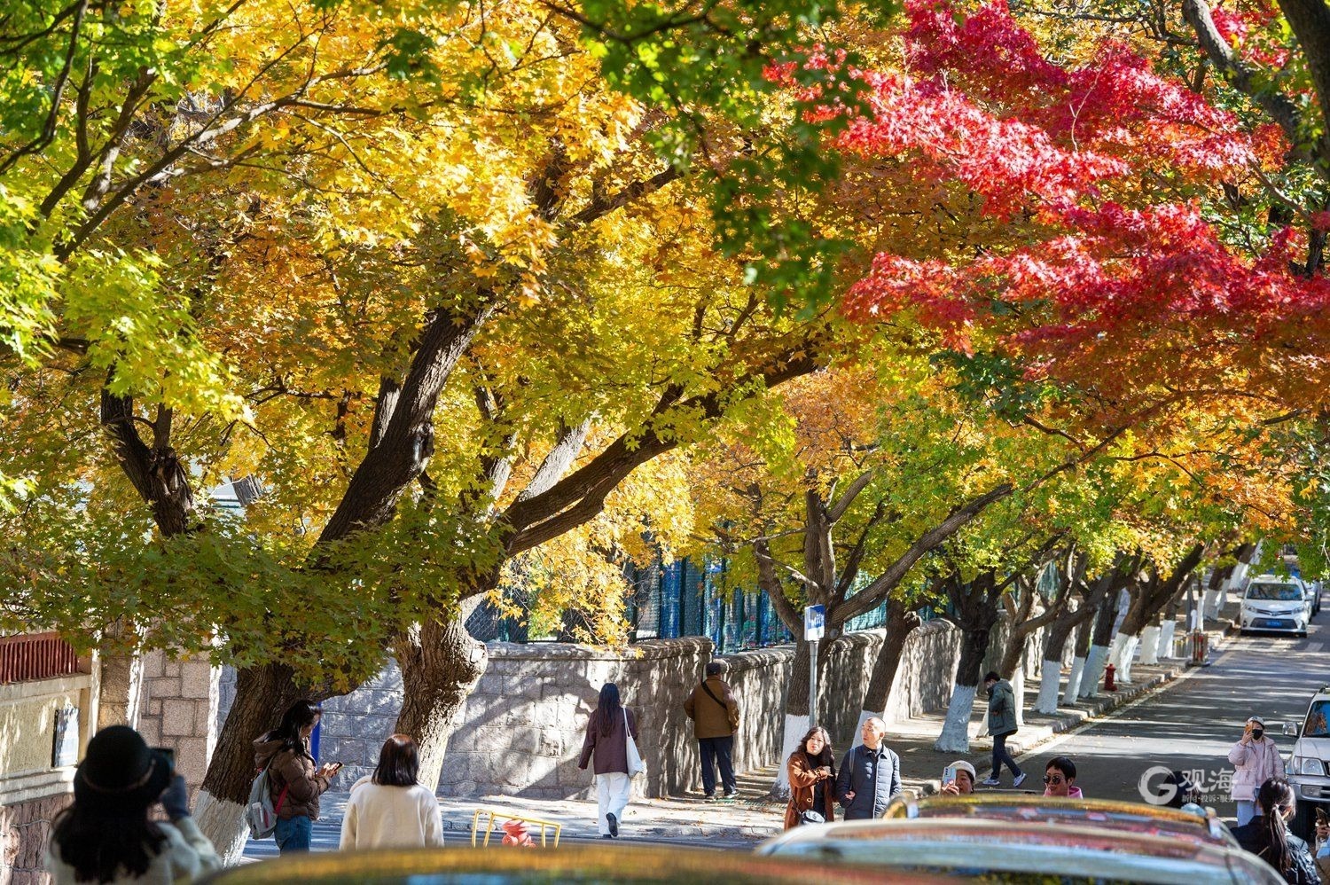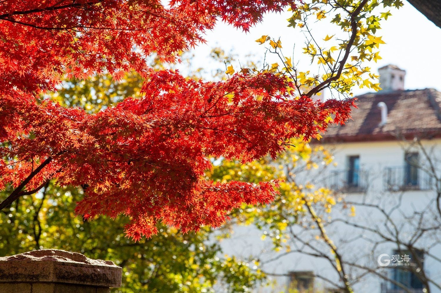 - 虽已入冬,但八大关内却留住了秋天最美的景色。枫树、银杏、法桐等植物的树叶变红、变黄,与错落有致的洋房建筑和老城街道构成一幅美丽的画卷。(青岛日报/观海新闻记者 于滈 摄影报道)