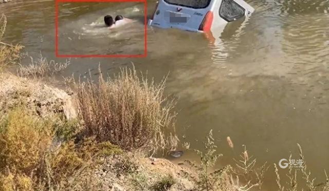 径直冲入两米多深的河里