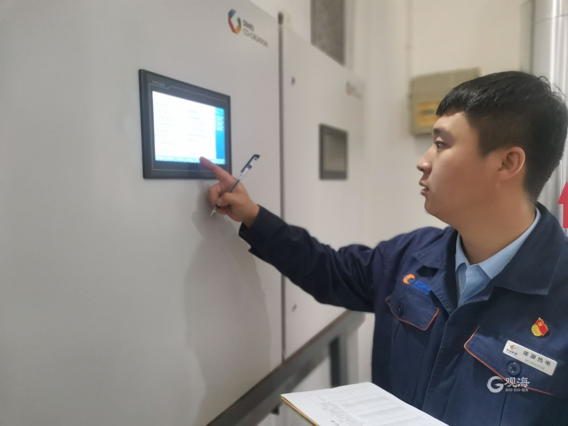 乔智明查看换热站设施运行情况。