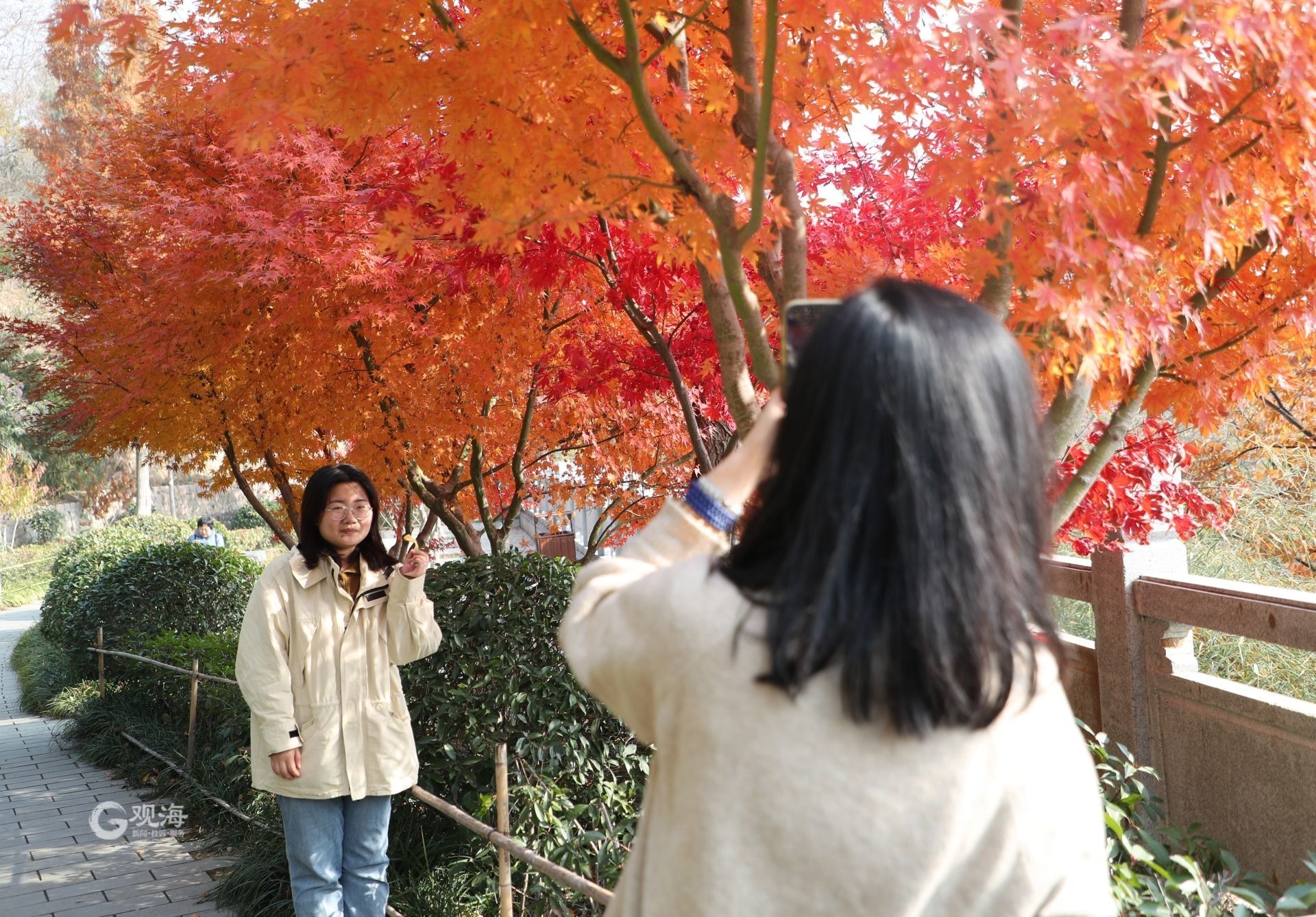 从“青”出发④|拍红枫的最佳机位!这座公园“喊”你来取景 2023-11-30 16:25 青岛日报社/观海新闻 樊蓉 说起竹子庵,人们总会第一时间想到那棵在山间伫立千年的银杏树,殊不知漫山的红枫树也是分外惹人眼。随着气温下降,山林间的红枫由绿转红,在阳光的照射下红艳夺目,绝对是不可多得的出片佳地。(青岛日报社/观海新闻记者 樊蓉 史玉辰|责任编辑 王雨欣) 山间的红枫树随着气温降低渐渐变黄、变红。 如果冬日有颜色,那一定有“枫叶红”的一席之地。 竹子庵内的红枫美景,成为游客们拍照打卡的最美背景板。 游客用镜头记录下美丽的红枫。 游客在红枫树下留影。