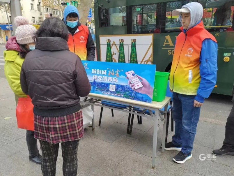 活动中,新时代文明实践站志愿者在公交车站人员密集的路口摆摊设点,面对面引导协助居民注册“随手拍”微信小程序,动员居民共同参与到社区环境大整治中来。志愿者们积极倡导居民随时关注身边的卫生脏乱、乱堆乱放等问题,随时拍照上传“文明青岛随手拍”小程序。