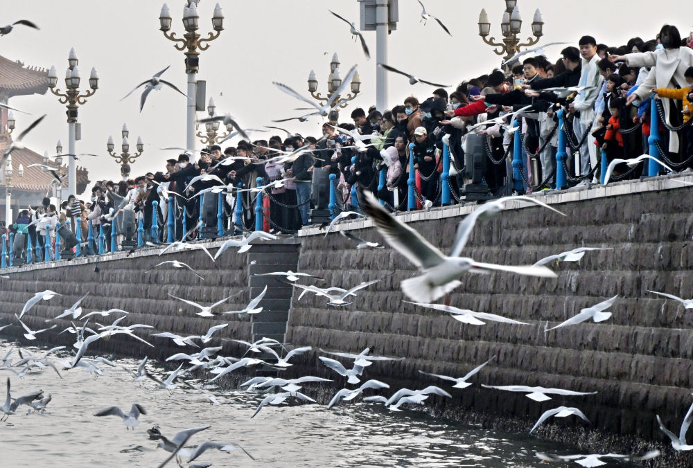 游客在山东省青岛市栈桥景区赏鸥、游玩。 近日,成群结队的海鸥在青岛栈桥低空盘旋、翩翩飞舞,形成了冬日海滨一道独有的风景。每年冬季,数以万计的海鸥从西伯利亚等地飞抵岛城栖息越冬,人鸥和谐共生的画面已成为一张靓丽的城市名片。 新华社记者 李紫恒 摄影报道 海鸥在山东省青岛市栈桥景区海面上飞舞。 游客在山东省青岛市栈桥景区赏鸥、游玩。 游客在山东省青岛市栈桥景区赏鸥、游玩。 游客在山东省青岛市栈桥景区赏鸥、游玩。 责任编辑:程雪涵 0