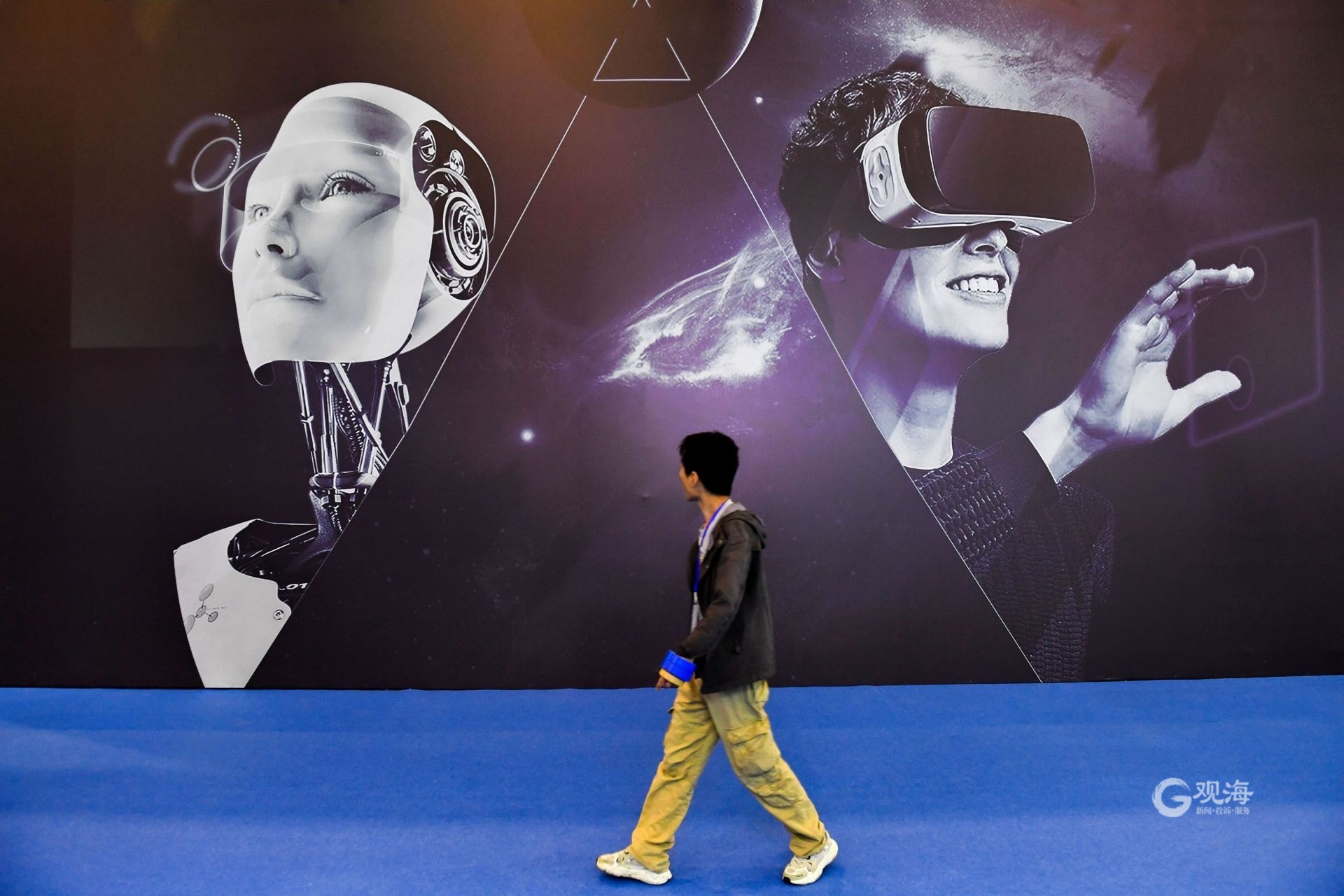 - 5月17日,2023中国国际消费电子博览会在青岛国际会展中心开幕,一名观众从“AI与未来”的海报下走过。此届电博会以“智汇融生 数聚未来”为主题,展示消费电子行业的最新技术和行业趋势。