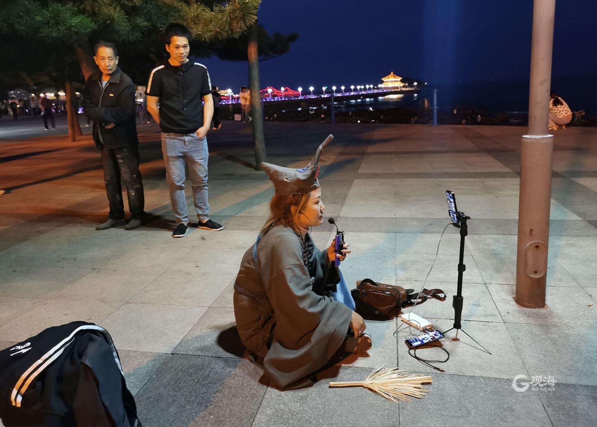 - 6月3日,一名打扮成济公的网络女主播在栈桥附近现场直播。近年来,网络直播站上风口,对网络主播们标新立异的吸睛方式,公众观点见仁见智。