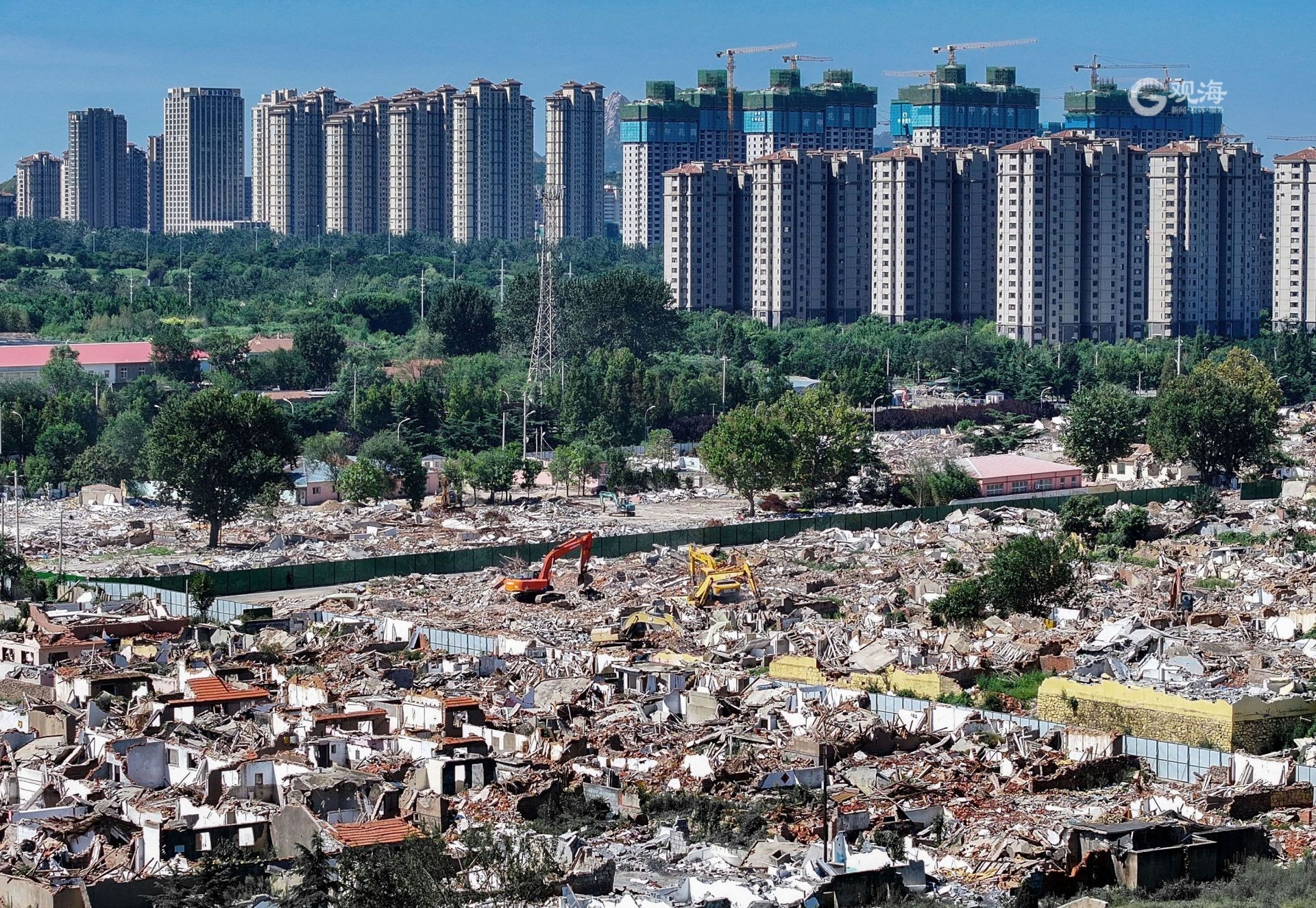 - 8月14日,崂山区张村河畔有600多年历史的枯桃村,在城市更新进程中征收拆迁。张村河片区是青岛市区最大的城中村,拆除中的枯桃村周边已经高楼林立。