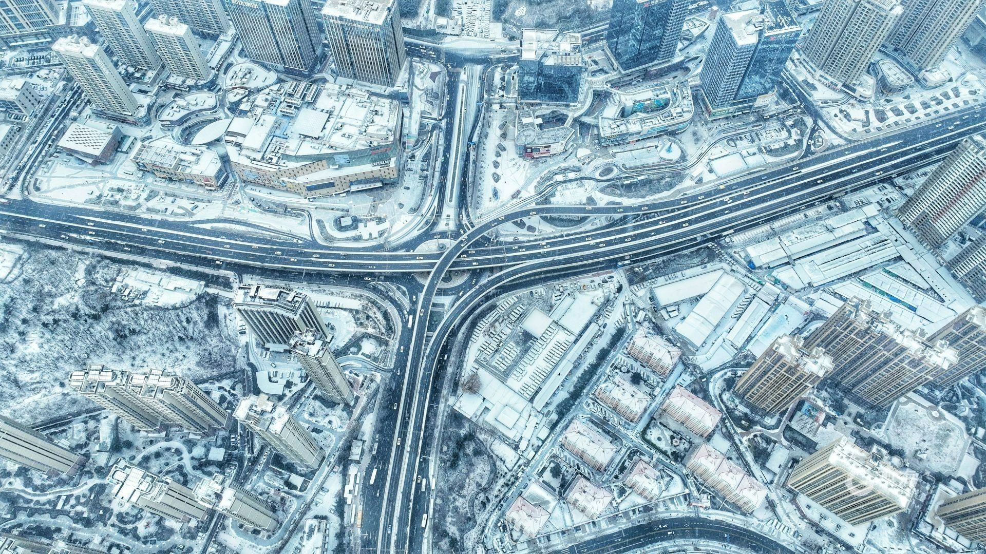 雪后的新都心。青岛日报/观海新闻记者 韩星 摄