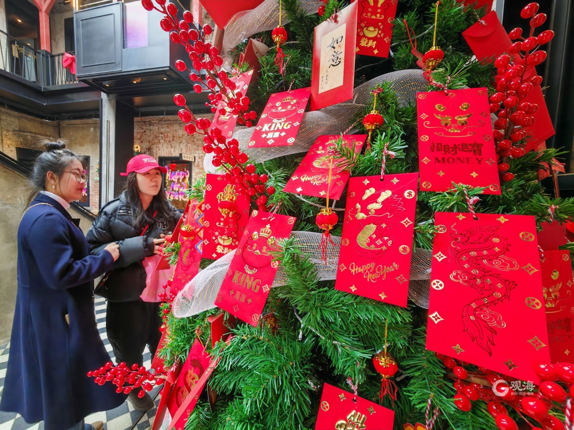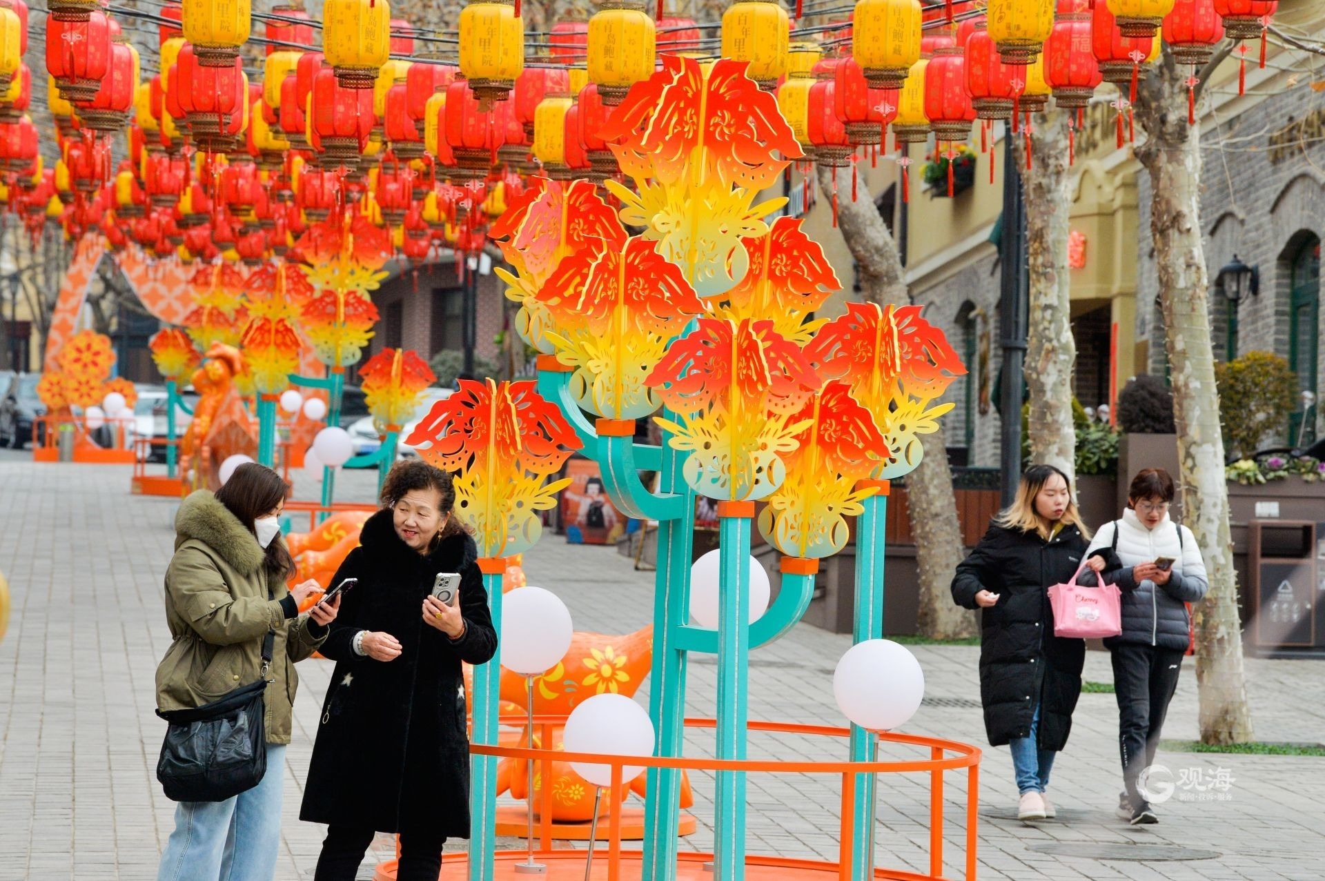 - 在海泊路,传统的新年装饰与现代艺术完美融合。五彩缤纷的花灯点缀着街道,让人仿佛置身于一个绚丽多彩的童话世界。