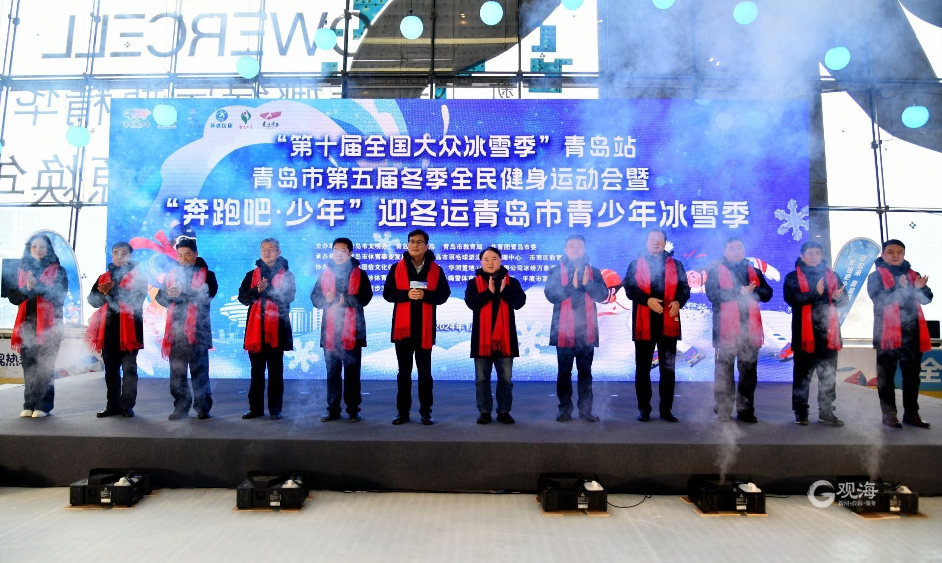 青岛日报社/观海新闻1月20日讯 今天上午,“第十届全国大众冰雪季”青岛站青岛市第五届冬季全民健身运动会暨“奔跑吧·少年”迎冬运青岛市青少年冰雪季开幕式在青岛万象城冰纷万象滑冰场举行。本届冰雪季旨在激发全民参与冰雪运动的新热潮,以更广泛、更多样的形式,深入每个角落,让冰雪的魅力触及更多人心。青岛市政府副秘书长王东翔;市体育局党组书记、局长蔡全记;市文明办副主任陈学明;共青团青岛市委副书记段开正;市教育局一级调研员庞甲海;市体育局副局长刘新宏;市体育局副巡视员段茂洋;市体育事业发展中心主任张敏;市南区教育和体育局局长焦淑军;青岛国信文化体育产业有限公司董事长杨强;万象城管理中心总经理贾蕊;融创文旅集团青岛东方影都文化旅游有限公司副总经理汤宇超等领导出席开幕仪式。