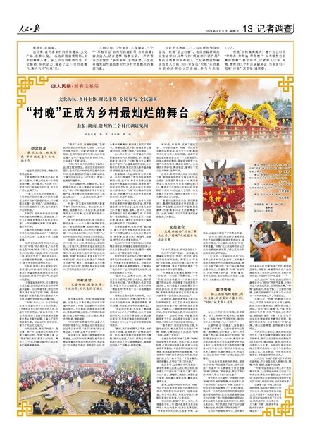 “村晚”为何越来越火?靠什么让村民“年年办、年年追、年年看”?又有哪些台前幕后故事?春节前夕,记者深入山东、湖南、贵州的三个村庄调研采访,与乡亲们一起看“村晚”,赏年俗,迎新春。