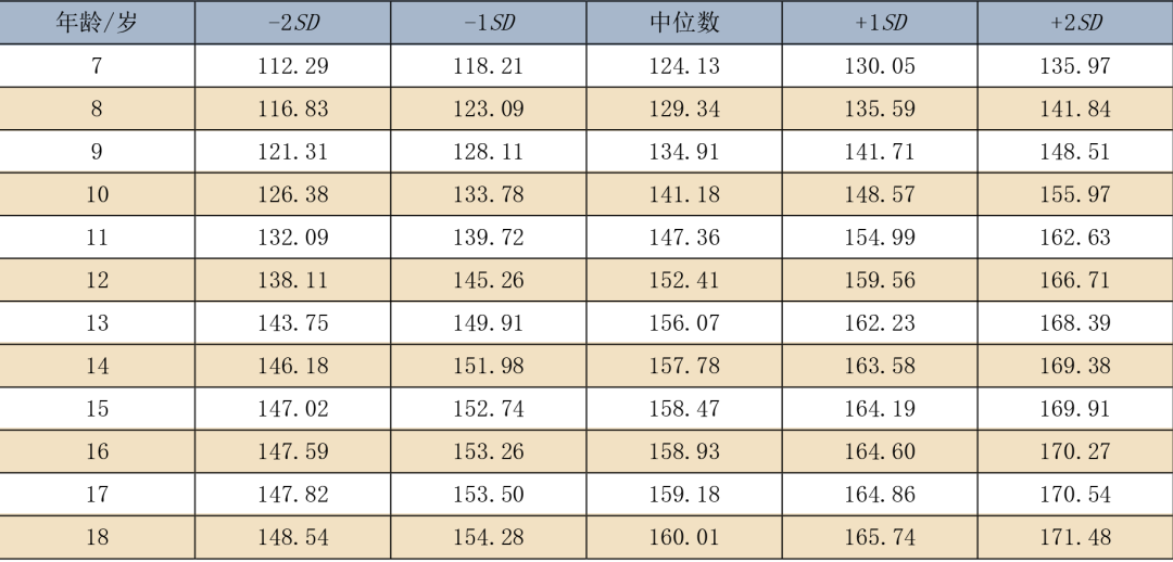 在国家卫生健康委员会发布的《7 岁~18 岁儿童青少年身高发育等级评价》中,将孩子的身高发育分成了5个等级: