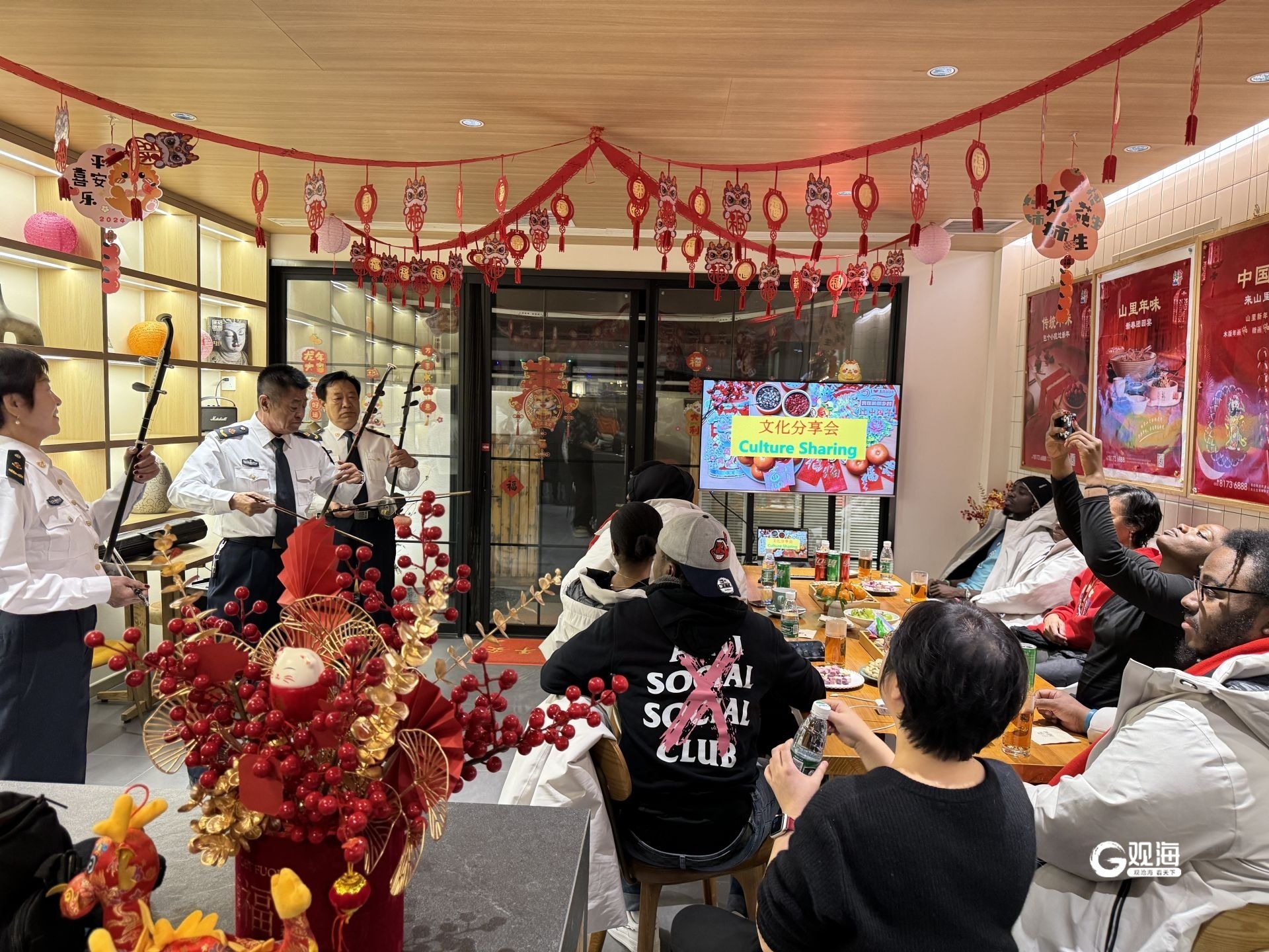 随后的二胡演奏,让留学生们感受到了中国传统乐器、乐理的奇妙,来自西海岸新区第二中医医院的专家们为留学生们带来了一场中医文化盛宴,讲解了常见疾病的穴位推拿保健,在沉浸式体验中感知中医、感知中国,促进中医药文化国际化传播。