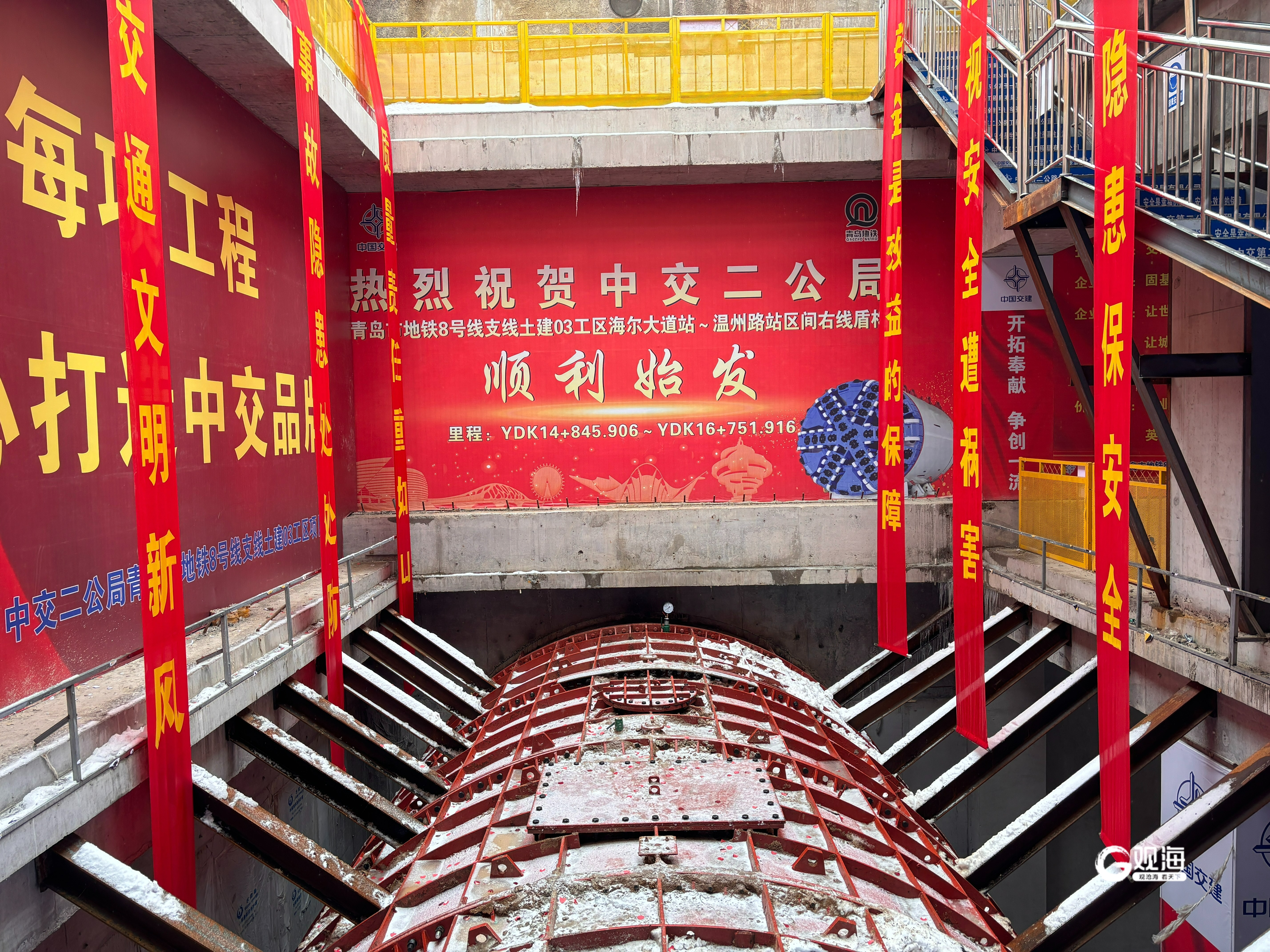 青岛日报社/观海新闻2月23日讯 2月21日,青岛地铁8号线支线迎来新进展。由青岛地铁集团有限公司第三建设分公司建设,中国交通建设股份有限公司、中交第二公路工程局有限公司承建的海温区间(海尔大道站-温州路站区间)右线 “胶州湾10号”盾构机顺利始发。这是地铁8号线支线始发的第10台盾构机,也是春节后该线路始发掘进的首台盾构机。