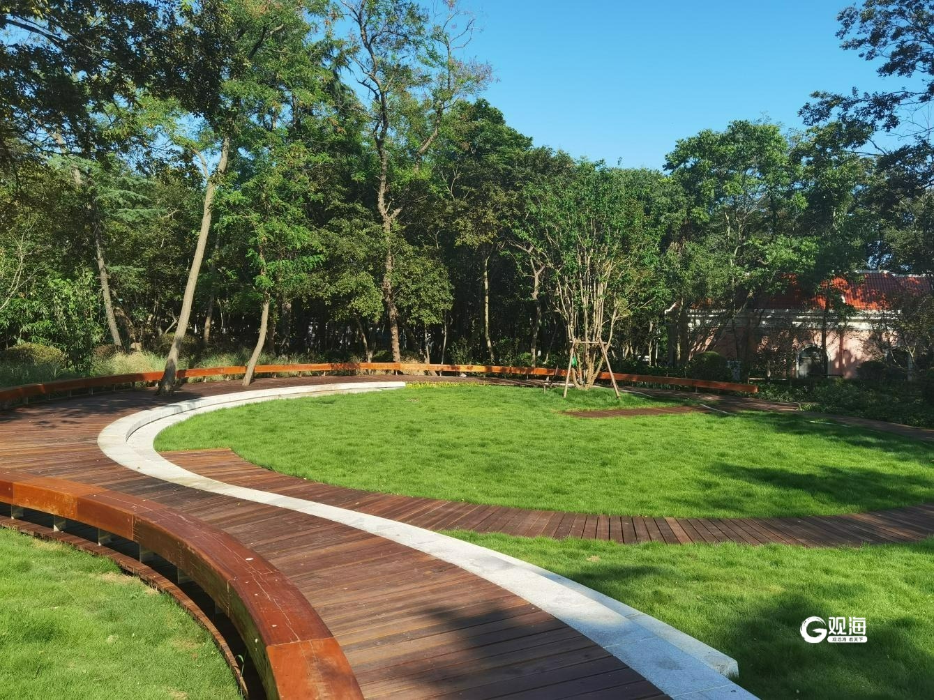 其中,仲林雅庭口袋公园位于市南区八大关、太平角一路绿地区域,利用现有空地,梳理园路、开辟林下空间,形成宁静、闲适的疏林草坪休憩空间。