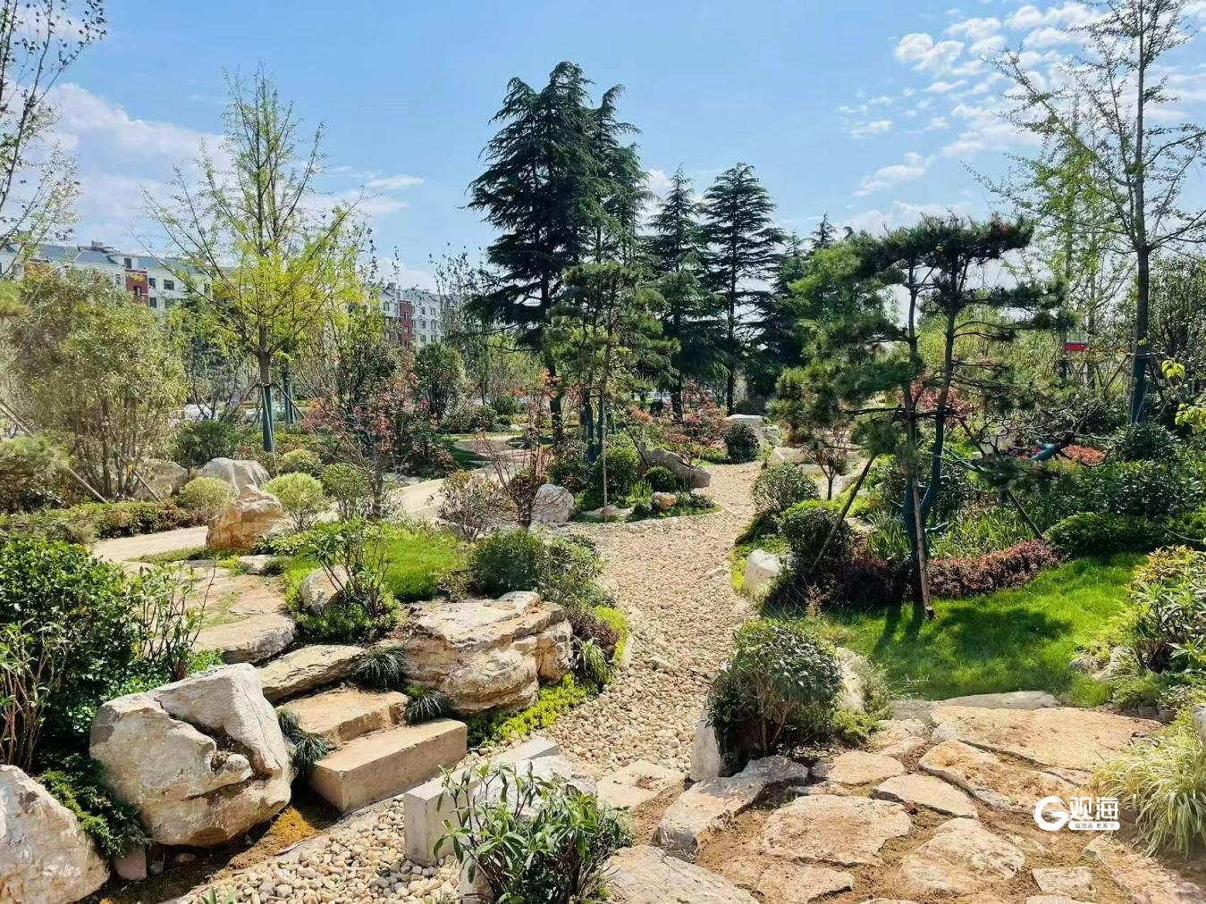 古韵园位于胶州市澳门路与常州路东南节点,以“中式游园、步移景异”为主题,打造一处隐于闹市的江南古典园林景观。院内青石小路,在直中有迂回,在舒缓处有起伏;仿古亭台水榭、湖面清风徐徐,已成为周边市民家门口的幸福新地标。
