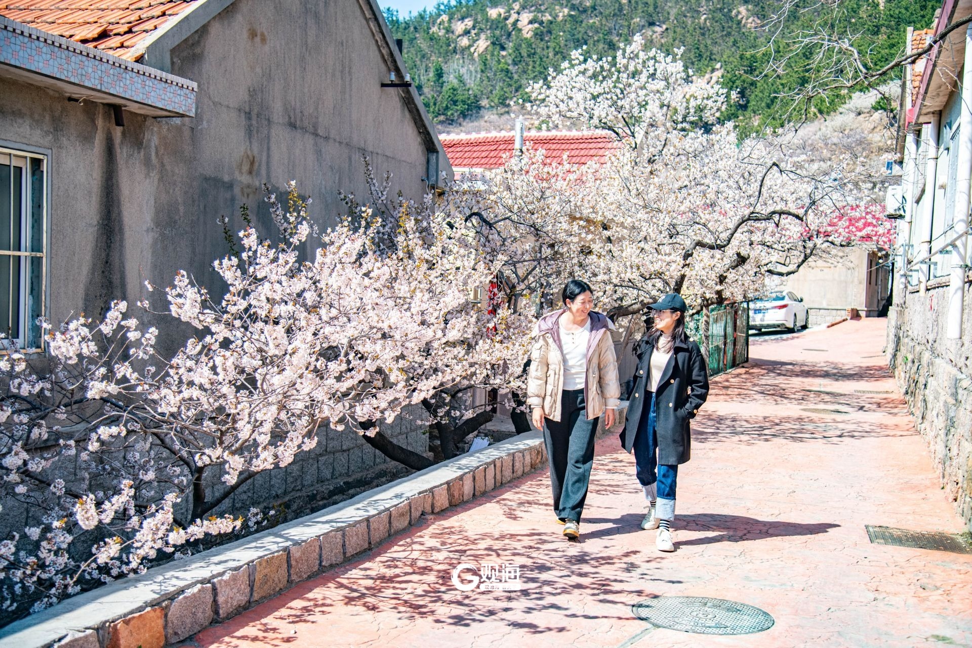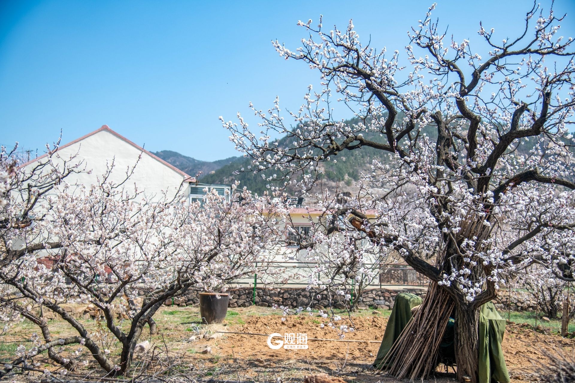 - 卧龙村内的樱桃花花开正盛。