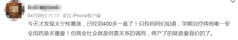 近期,知名痔疮药太宁栓停产的消息