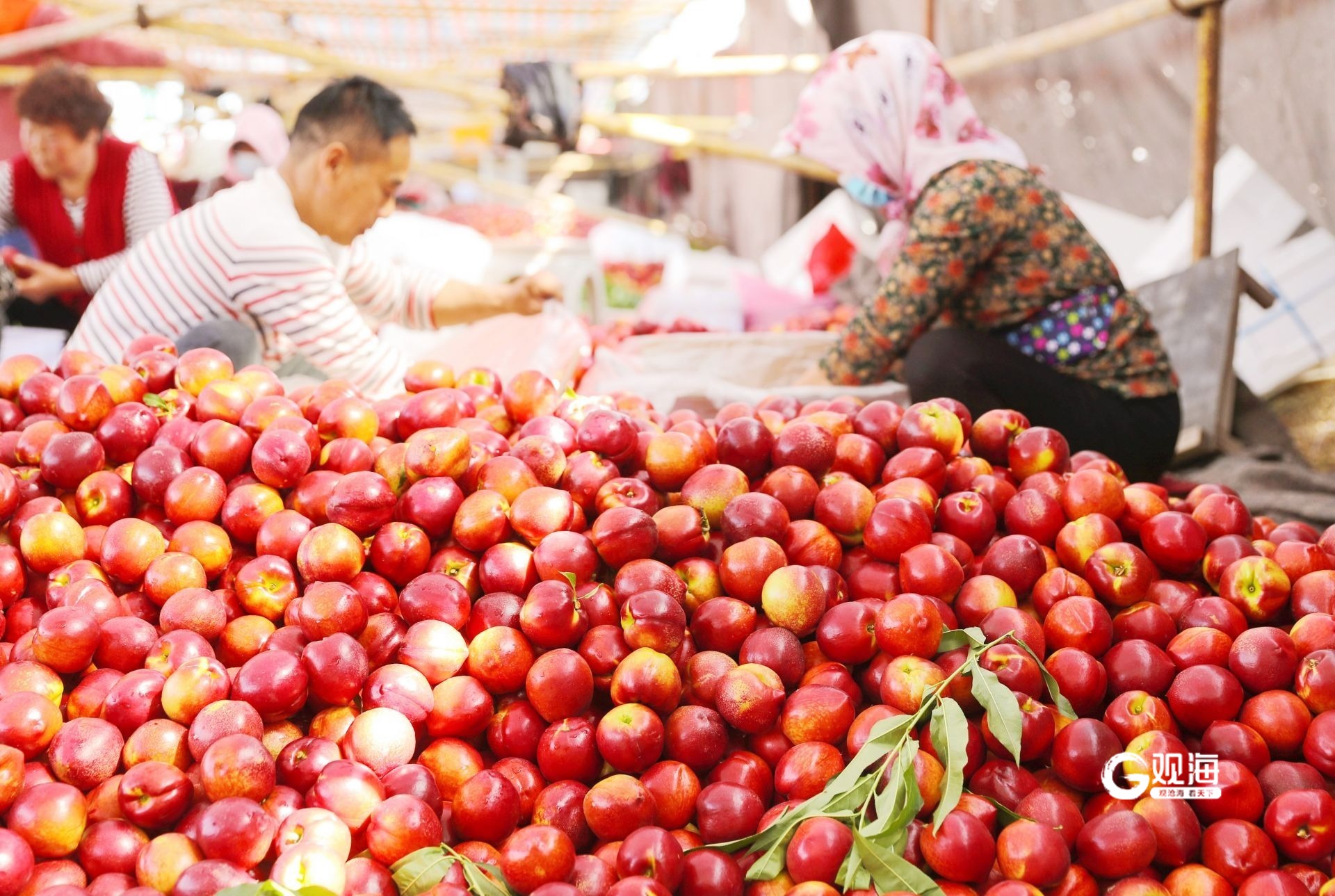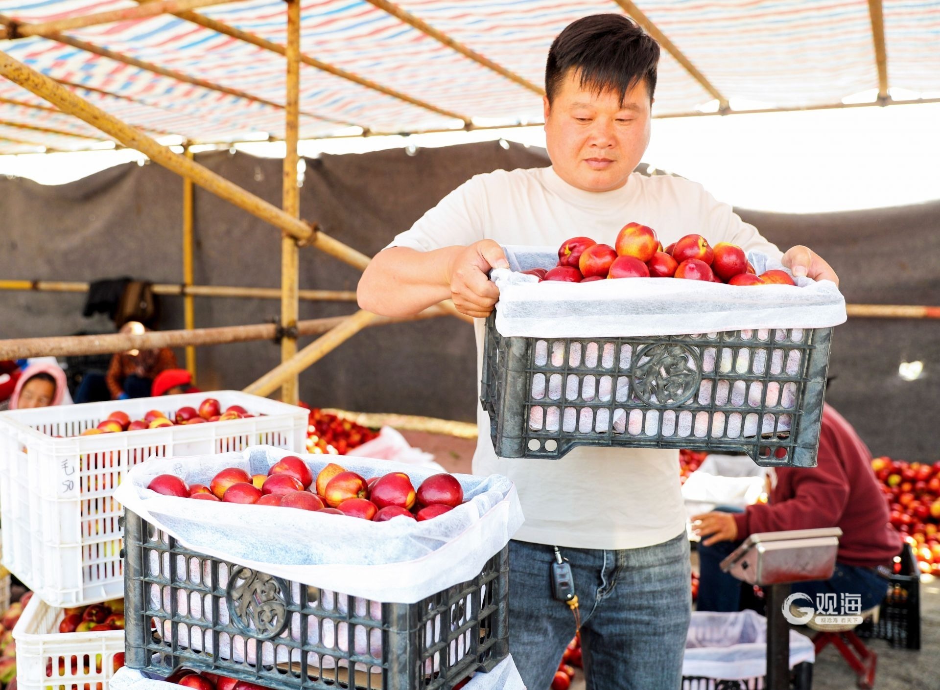- 近日,素有“中国油桃之乡”的莱西市院上镇王家庄的油桃开始上市,当地农民抢抓农时采摘销售。近年来,王家庄充分利用当地土壤、气候特点,发展果树种植,建起油桃交易市场,吸引了众多游客和客商前来采摘和选购,拓宽了农民的增收渠道。(观海特约摄影师 张进刚|责任编辑 樊蓉)