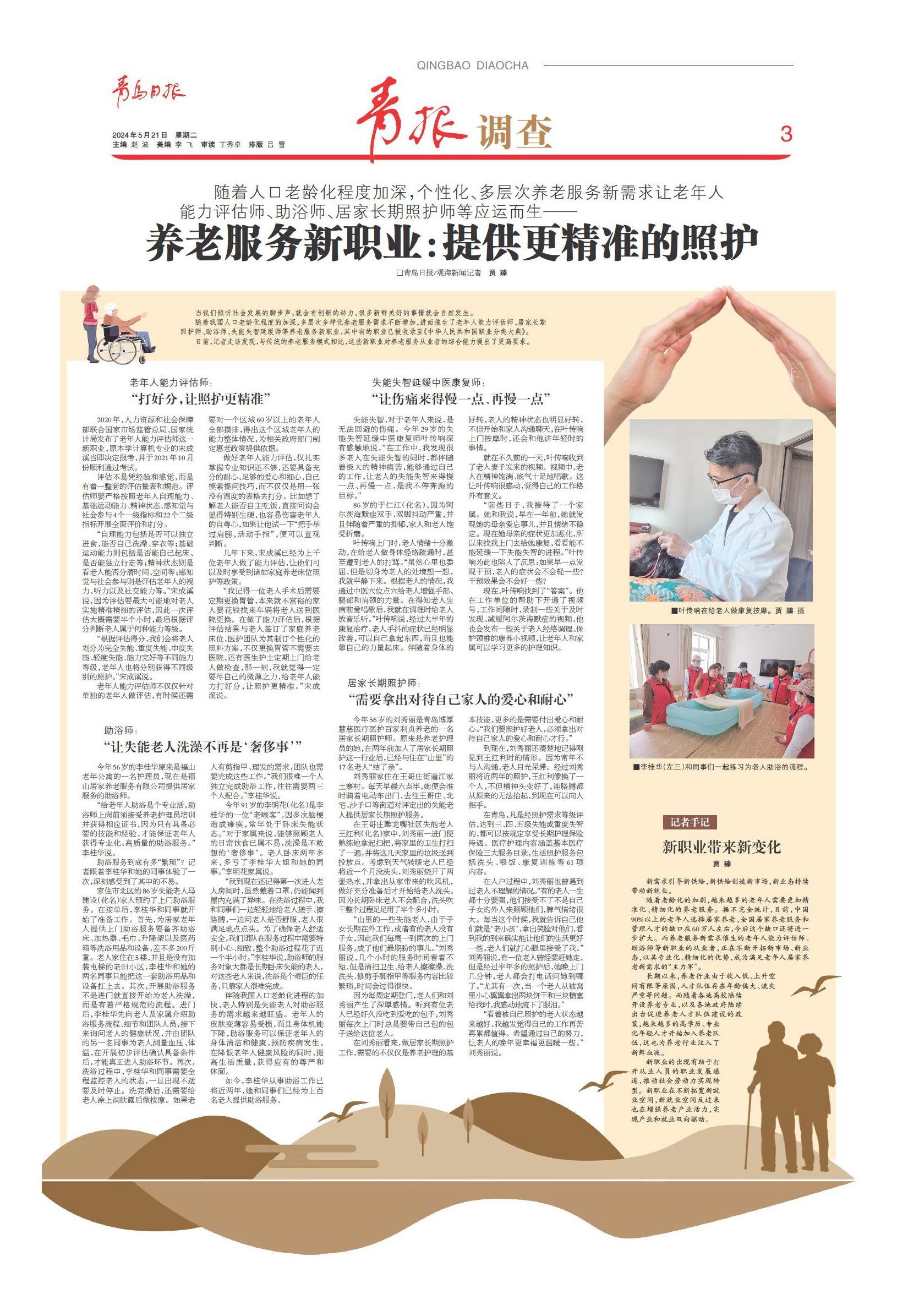 随着人口老龄化程度加深,个性化、多层次养老服务新需求让老年人能力评估师、助浴师、居家长期照护师等应运而生——