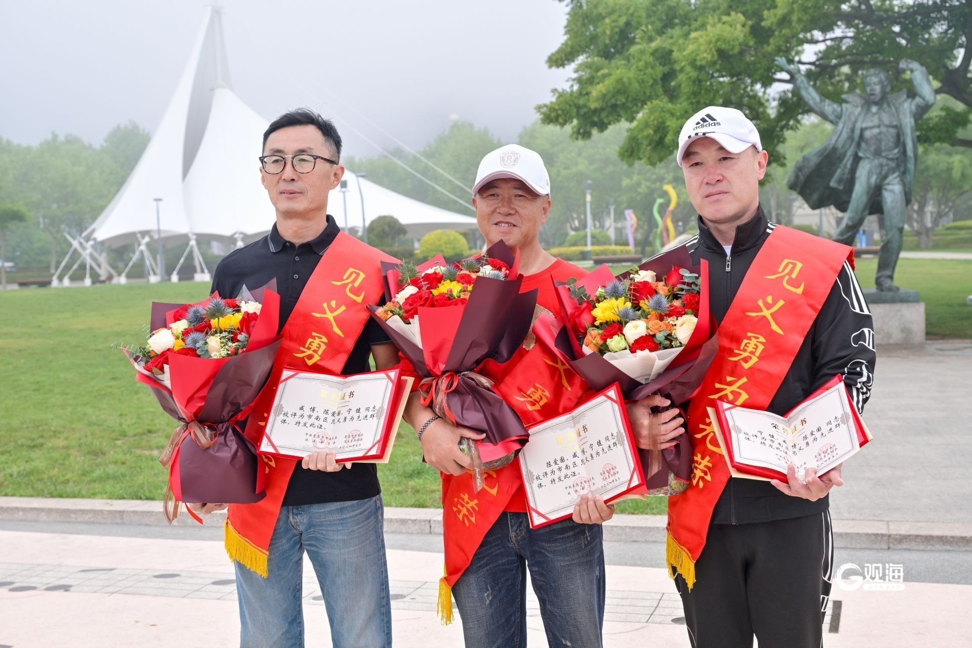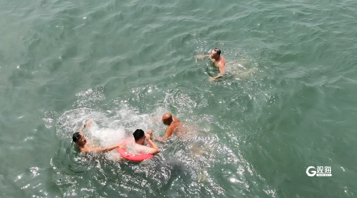 5月18日,咸博、宁健、陈爱国在海中救援落水男子。视频截图