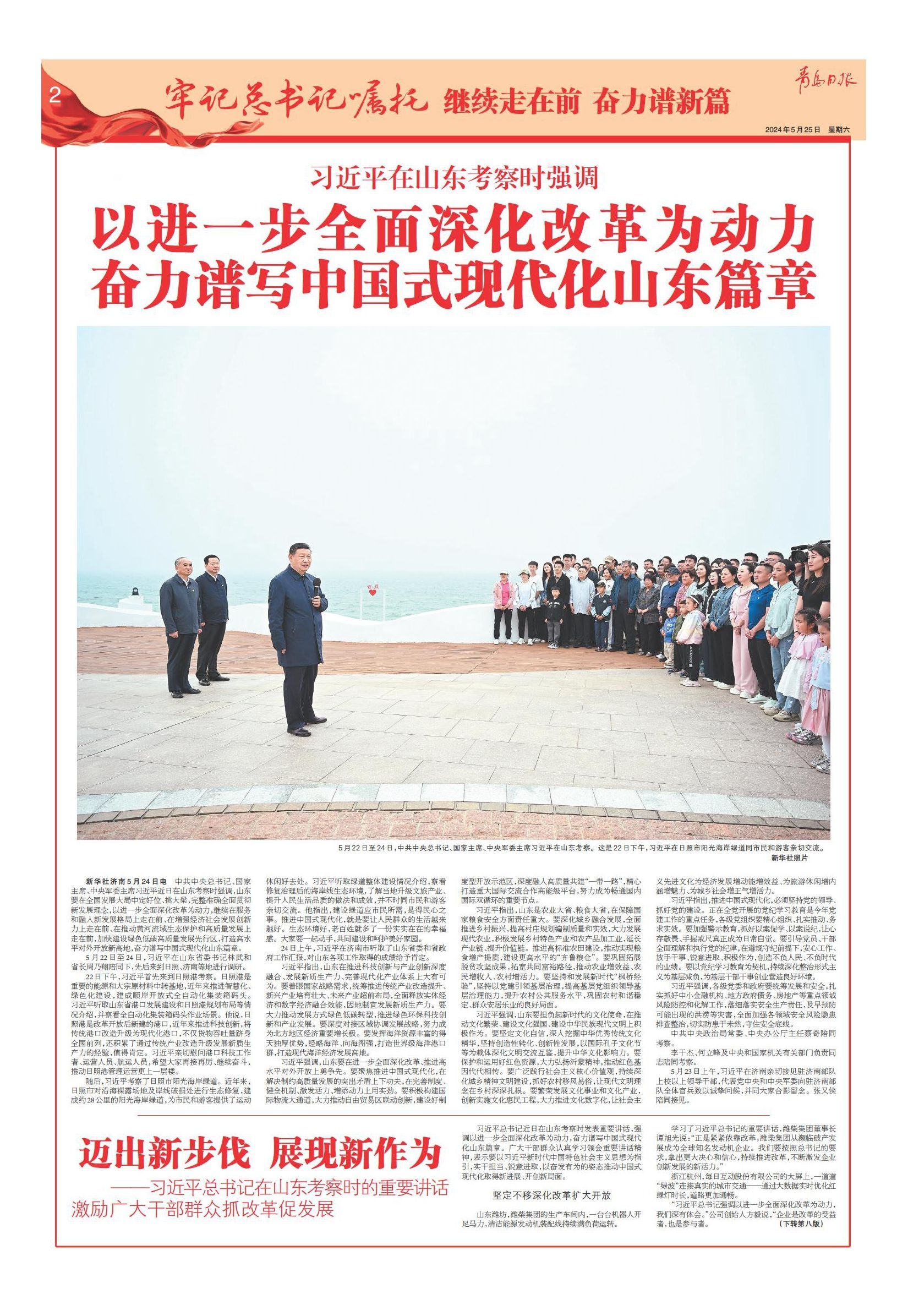 ——习近平总书记在山东考察时的重要讲话激励青岛广大干部群众用好改革法宝、发展新质生产力