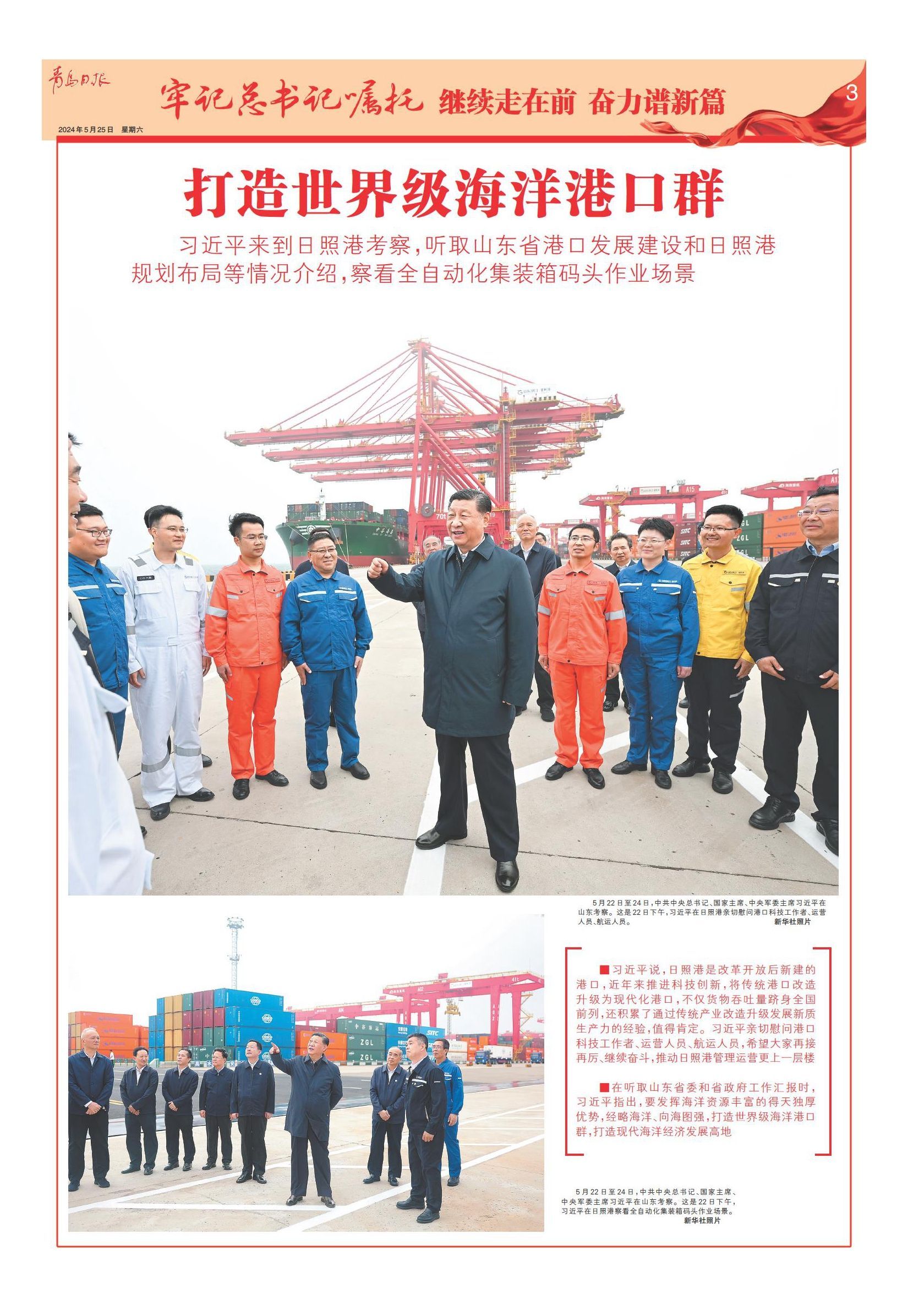 5月22日至24日,习近平总书记先后来到日照、济南等地进行调研,听取山东省委和省政府工作汇报并作重要讲话。