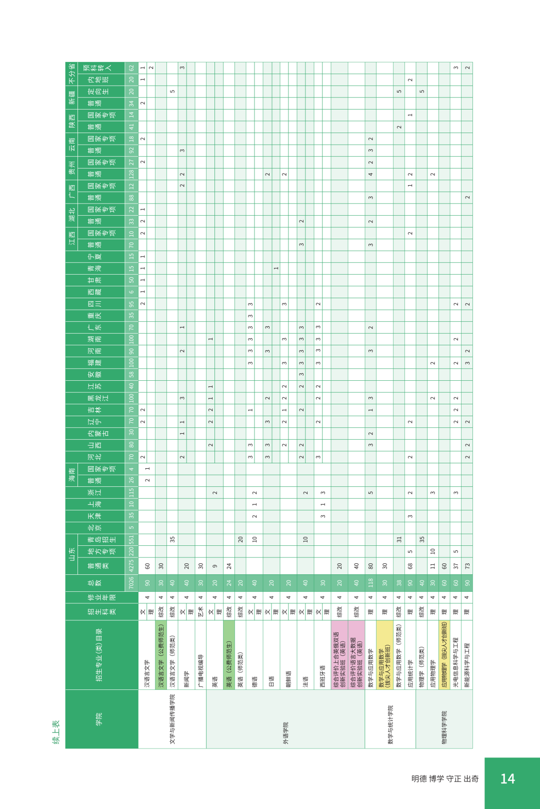 2024年分省分专业招生计划表