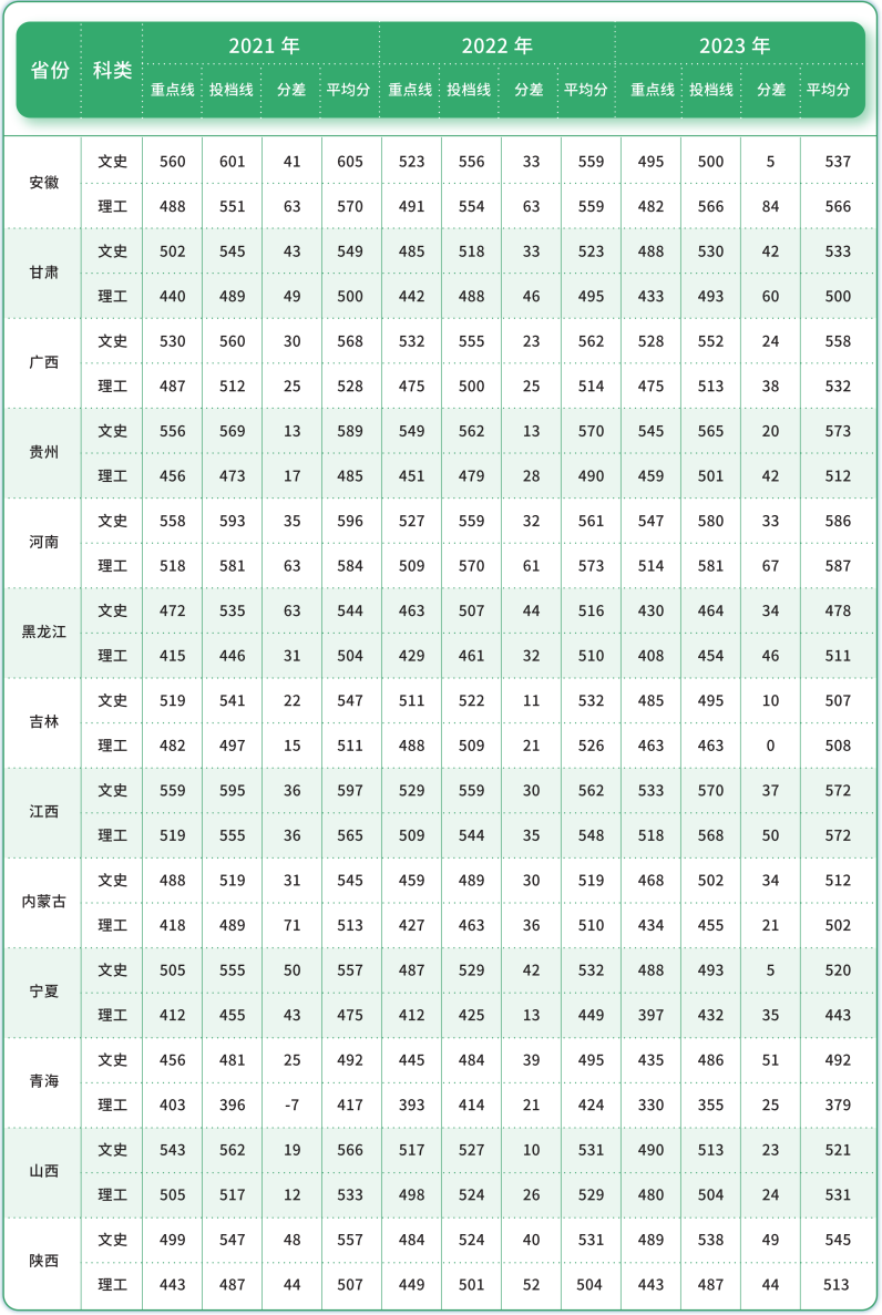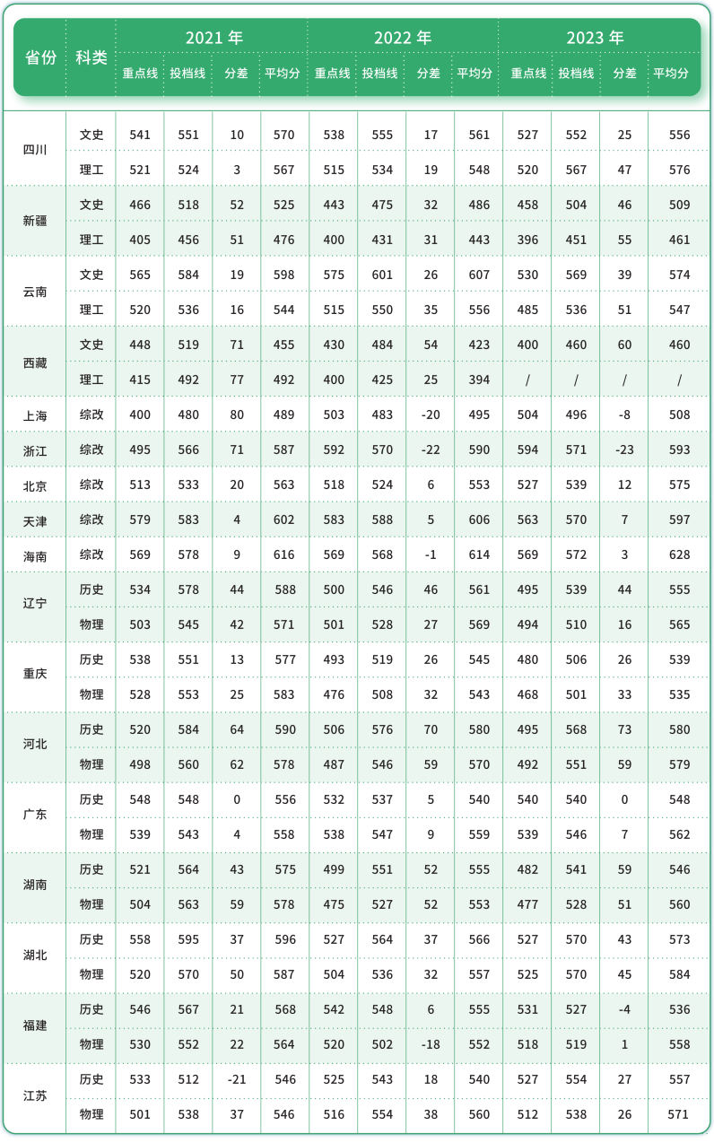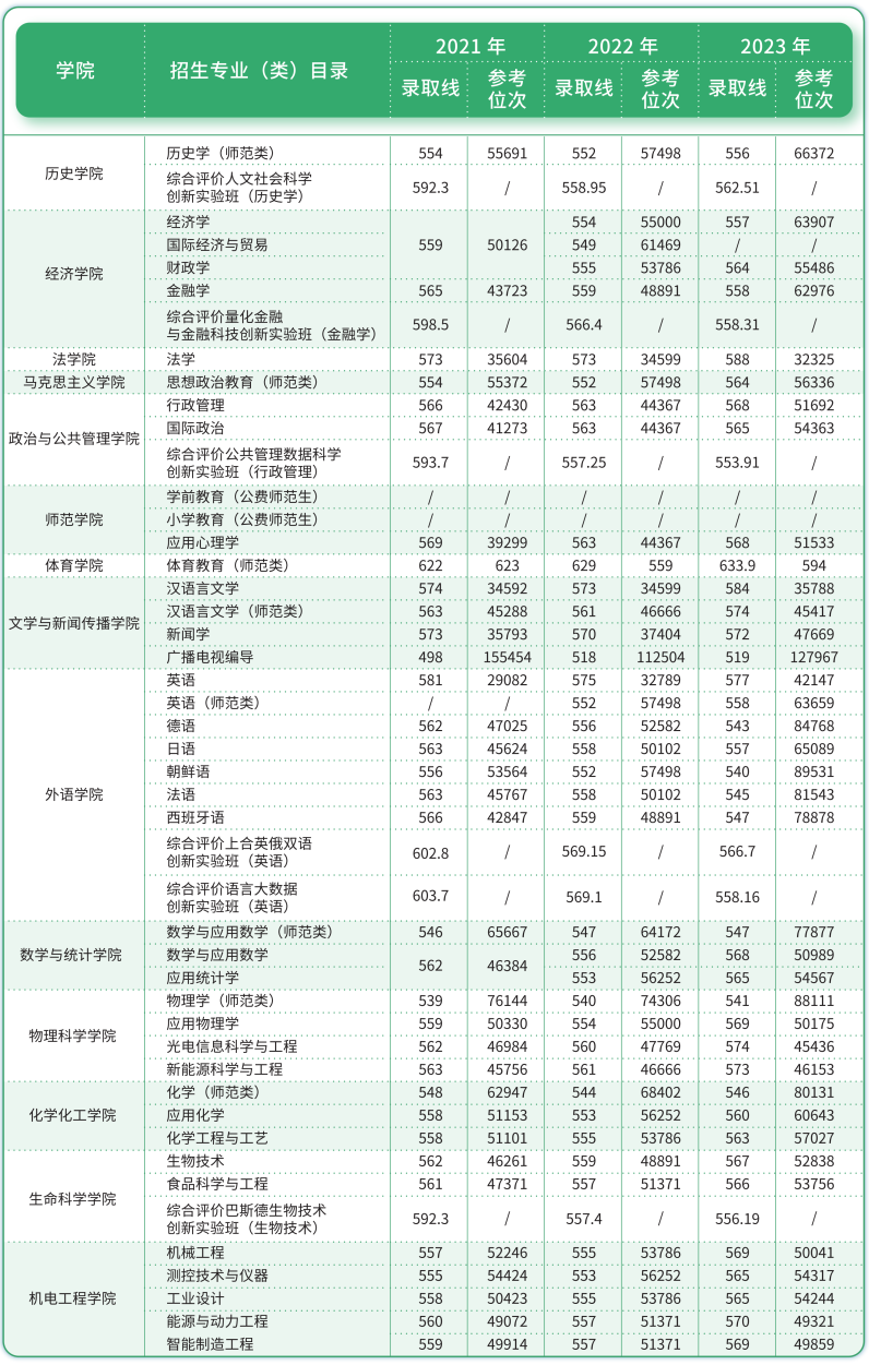 往年录取分数及参考位次