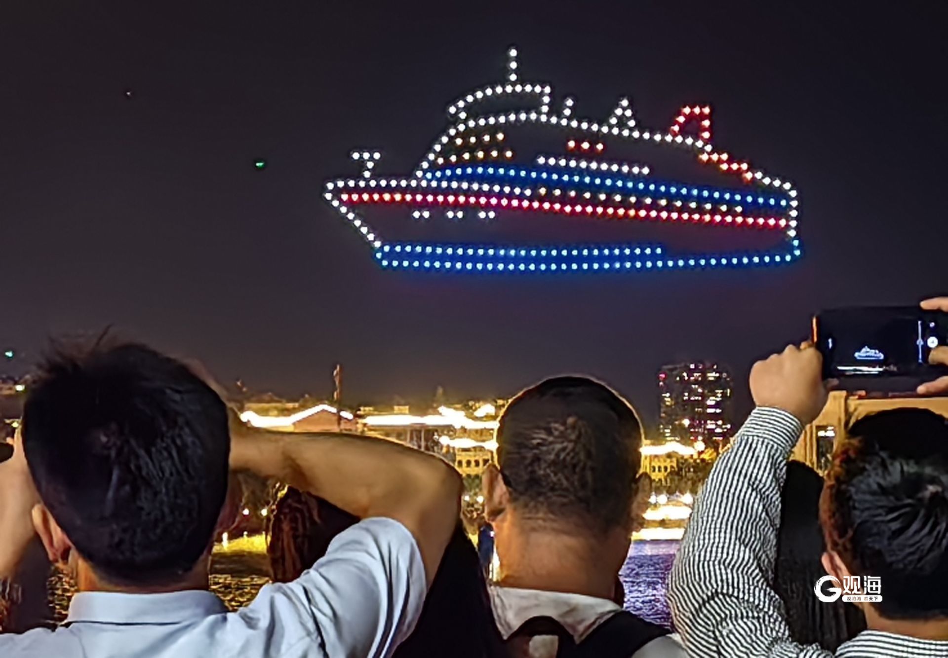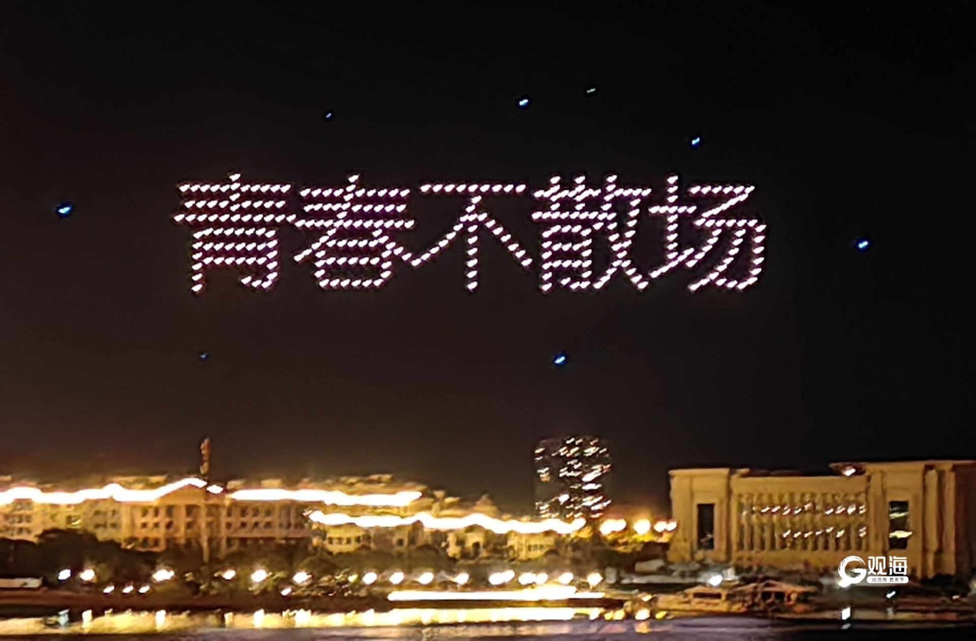 活动最后,由青岛旅游集团文化演艺公司呈现的毕业主题无人机秀更是将活动推向高潮,三百架无人机腾空而起,在夜空中绘制出“青春不散场”“市南欢迎你”“毕业快乐”等一幅幅精美绝伦的图案和祝福语,寄托了城市对毕业生们的美好祝愿,以青春宣言点亮城市夜空。