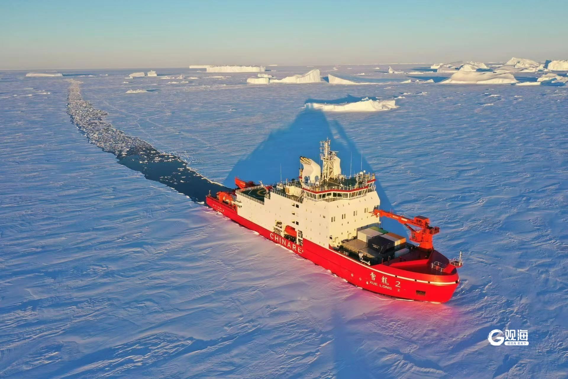 “雪龙2”号极地考察船是中国第一艘自主建造的极地科学考察破冰船,也是全球第一艘采用船艏、船艉双向破冰技术的极地科考破冰船,船长122.5米,宽22.3米,设计吃水7.85米、排水量13390吨,航速15节,续航力20000海里,自持力60昼夜,能够在1.5米厚冰环境中连续破冰航行,填补了我国在极地科考重大装备领域的空白。 “雪龙2”会同“雪龙”号于今年4月共同执行完中国第40次南极考察任务返回中国,在经过简短时间休整后,即将开展第14次北冰洋考察任务。