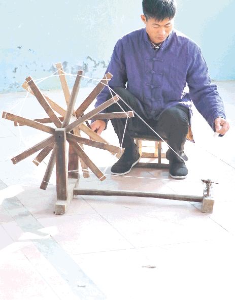 纺织老粗布,要经历纺线、刷线、缠机、栓布等三十多个工艺环节。