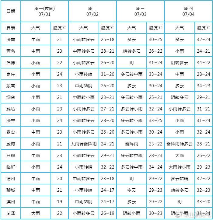 3日夜间到4日白天,全省天气多云转阴,鲁南地区有中到大雨局部暴雨并伴有雷电,其他地区有雷雨或阵雨。