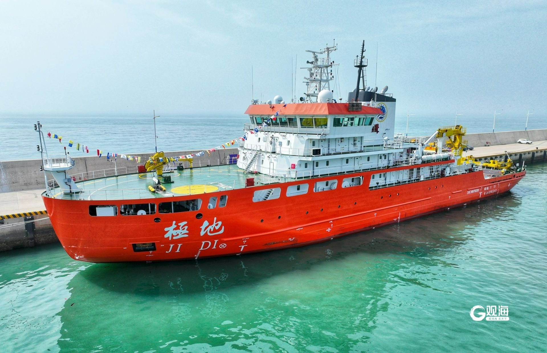 “极地”船继承和延用了北海局原万吨级极地考察功勋船“极地”船舷号。原“极地”船自1986年首航至1994年退役,先后六赴南极,圆满完成我国南极长城站扩建、中山站建站、考察站补给的物资运输及南大洋考察等重大任务的保障工作,为我国南极事业发展作出了突出贡献。新入列的“极地”船将服务于我国海冰等海洋灾害防灾减灾能力提升,冬季可航行于我国黄海、渤海海域进行冰区海洋环境监测调查,兼顾冰区救助,同时具备夏季极地海域科学考察能力,丰富了我国冰区科考装备平台体系,是我国极地考察的重要新生力量,能够助力青岛打造成为大洋、北极科考保障中心。(青岛日报/观海新闻记者 李勋祥/文 韩星/图)