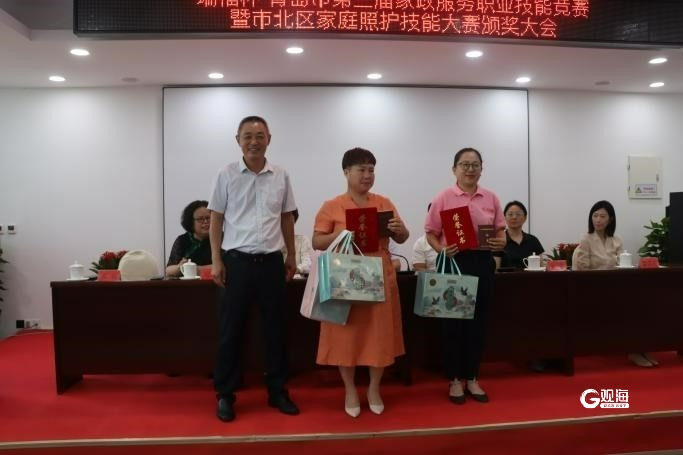 青岛日报社/观海新闻7月12日讯 7月12日上午,“瑞福杯”青岛市第三届家政服务行业职业技能竞赛暨市北区家庭照护员技能大赛颁奖大会正式召开。据了解,本次大赛报名总人数共188人,各路家政服务能人同台竞技,全面展示专业的服务水平和技能水平,书写养老服务的工匠精神和大爱情怀。青岛报业传媒集团、青岛爱心大姐服务有限公司、青岛市总工会、青岛市家政服务协会、青岛市市北区人力资源和社会保障局局相关部门领导和瑞福助老助残公益服务中心主任出席了会议。