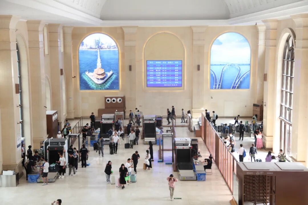 升级改造青岛站东进站区域进站流线,由原来的纵向闸机移位至现有横向,旅客进门后就能更直观的刷证进站。