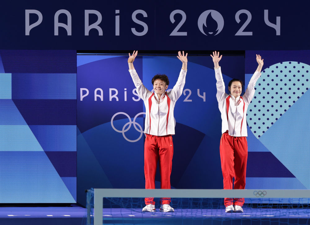 青岛日报社/观海新闻7月27日巴黎讯 7月27日,在巴黎奥林匹克水上运动中心,观海新闻特派记者现场见证了陈艺文/昌雅妮3米板摘金。