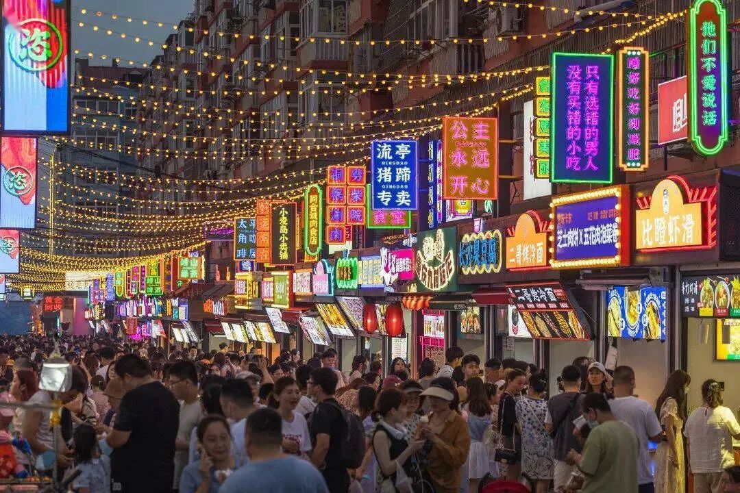 盛夏夜晚,青岛“恣儿街”的店招流光溢彩