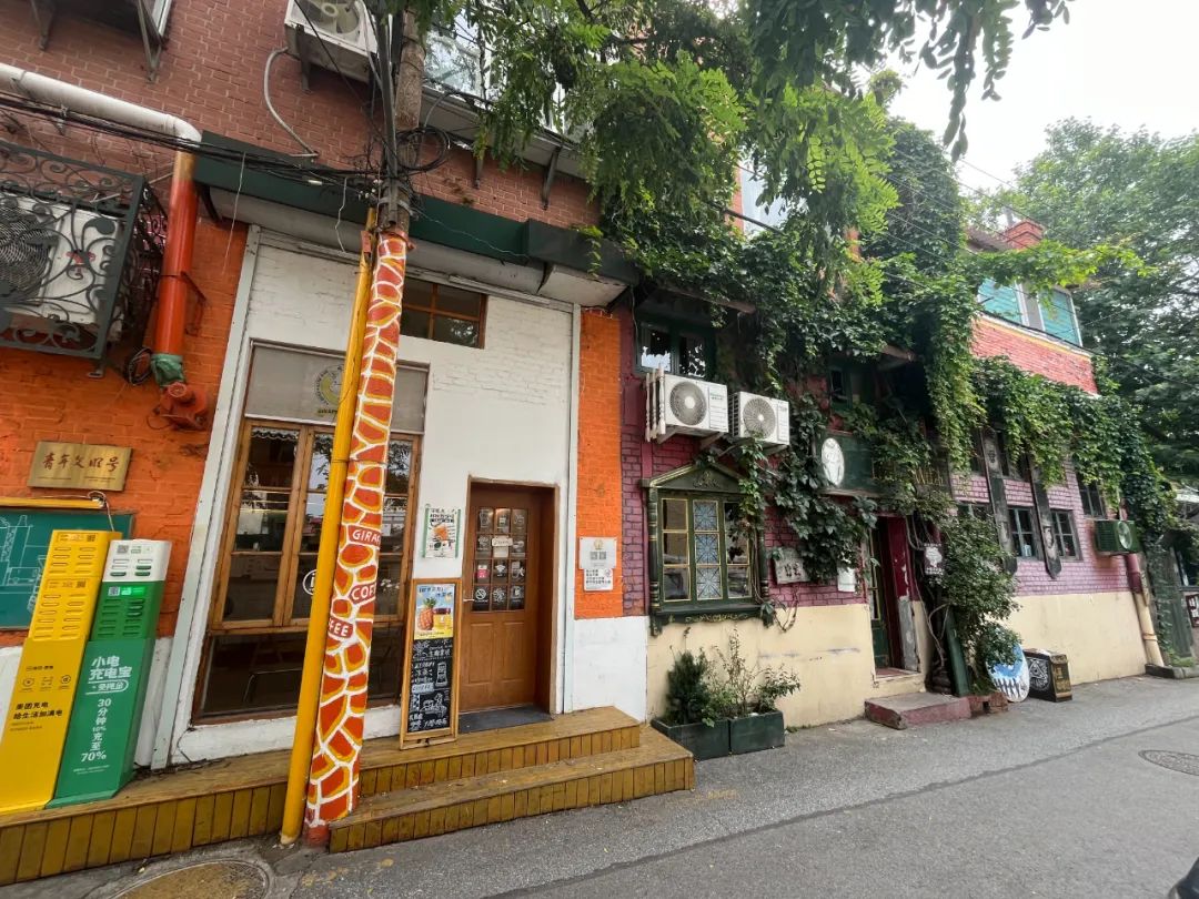 青岛大学路附近一家咖啡店,连门前的电线杆都纳入到店招的装饰范畴