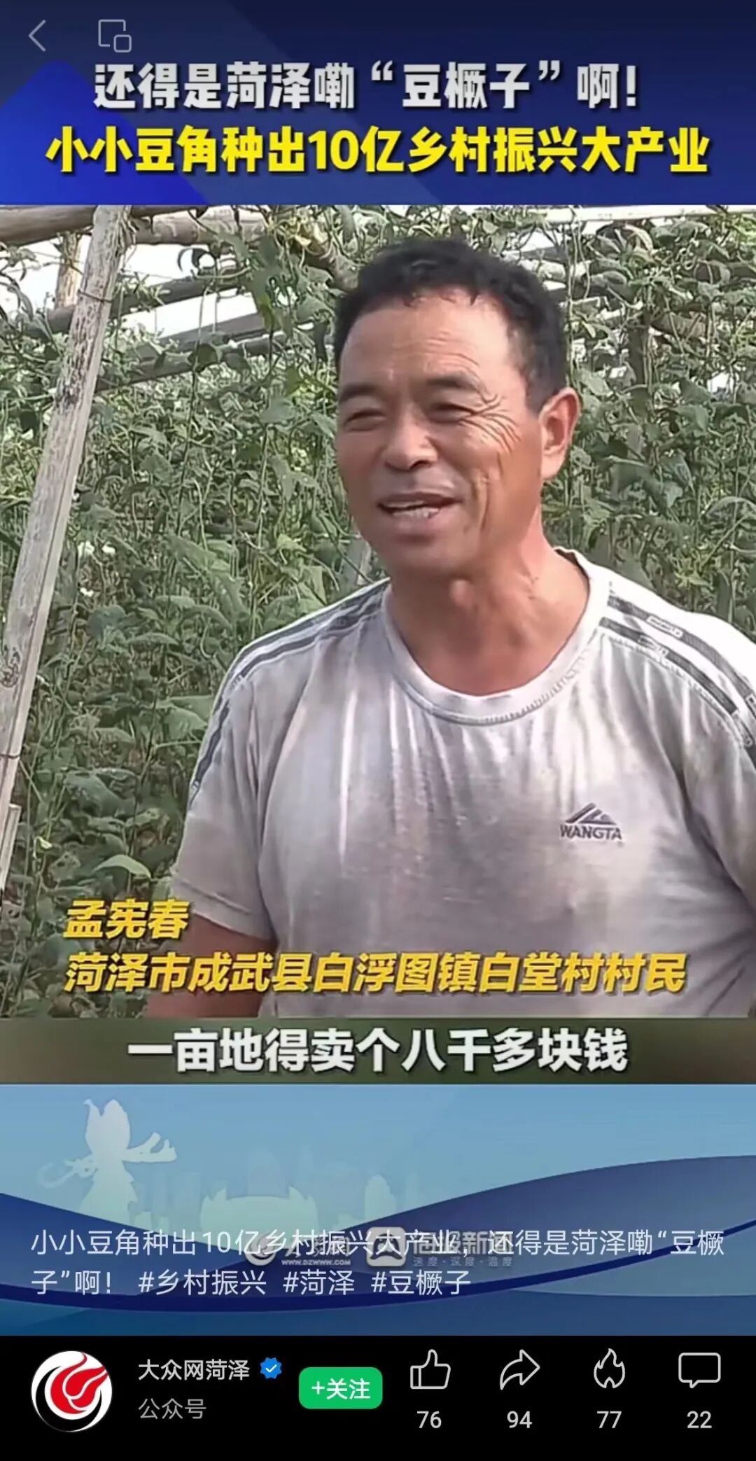 不离不弃的陪伴。豆橛子生命力顽强,房前屋后几乎有块地就能种,不用怎么伺候,一长就是一大片,一摘就是整个夏天。在忙碌的夏管时节,农人们吃饭怎么方便怎么来,而豆橛子就在藤上静静等着,任由你随时采摘。勤劳生长的豆橛子,陪伴着同样辛勤劳作的山东人,度过了一个又一个农忙日子。