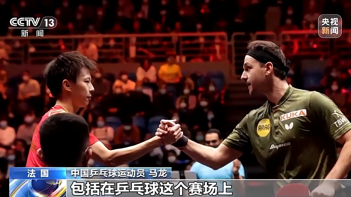 中国乒乓球运动员 马龙:大家都彼此尊重,都认为是这种最优秀的运动员,他在球场上他这个年纪还能保持这么高的水平,作为无论是朋友还是对手来说都非常为他高兴,我相信乒乓球因为有波尔,尤其是外国选手或者是在德国,因为有了波尔这么多年一直以来保持一个高水平,才让更多的德国朋友或者欧洲朋友喜欢上乒乓球。