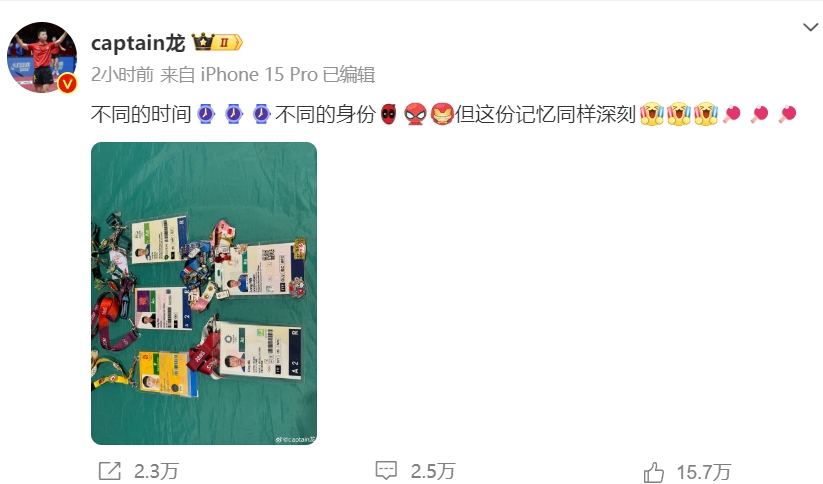 13日,马龙发文晒奥运会参赛证,并表示,不同的时间,不同的身份,但这份记忆同样深刻。 5张参赛证见证马龙16年。