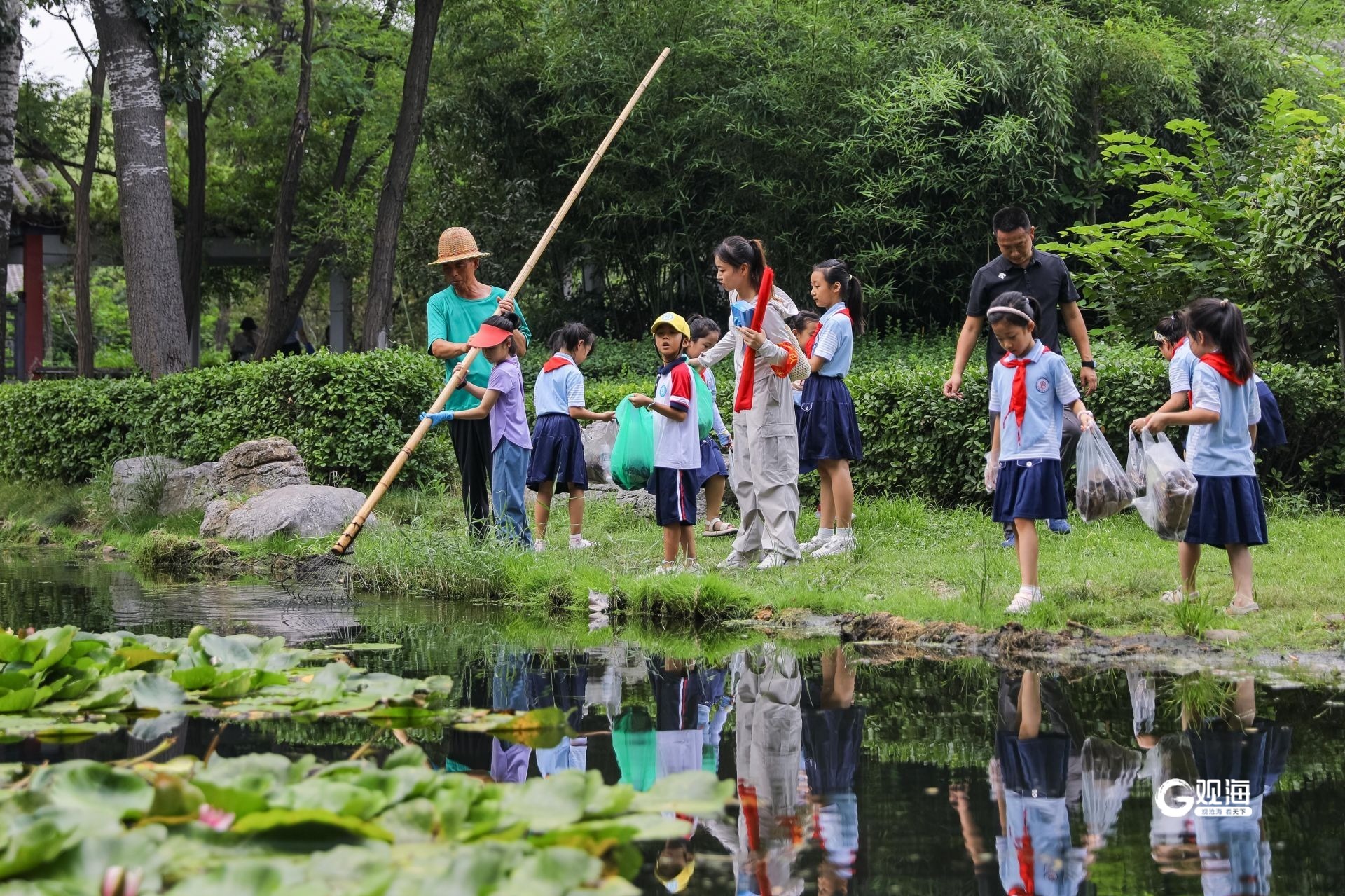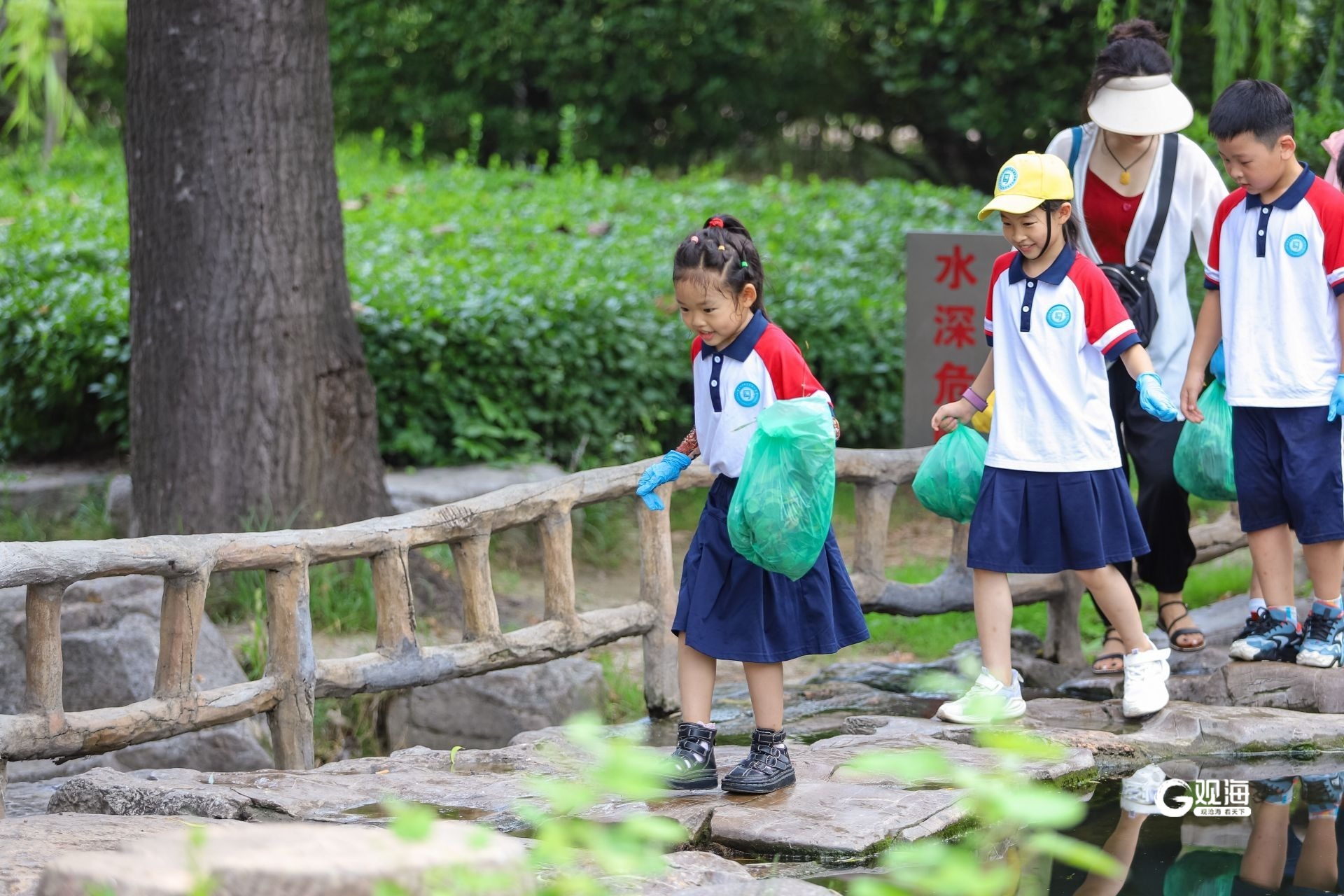 - 学生们分工协作、齐心协力,手拿钳子和垃圾袋等工具,沿着公园、河道、绿化带,捡拾河道中的水草、草丛里的烟头纸屑等废弃物,以实际行动营造健康文明、干净整洁的公园环境。