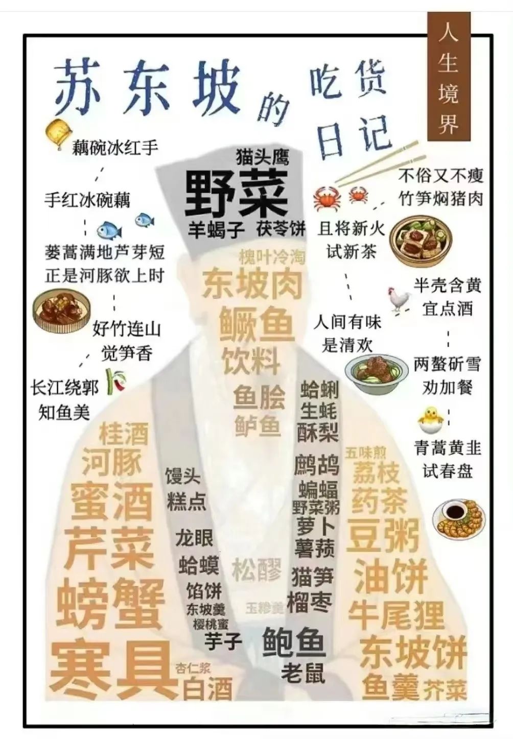 而苏轼,一个“自笑平生为口忙”的人,完美符合了年轻人心中“优秀饭搭子”的标准。跟着他,走到哪儿就能吃到哪儿,一边大快朵颐,一边还能学习美食来历、制作方法。