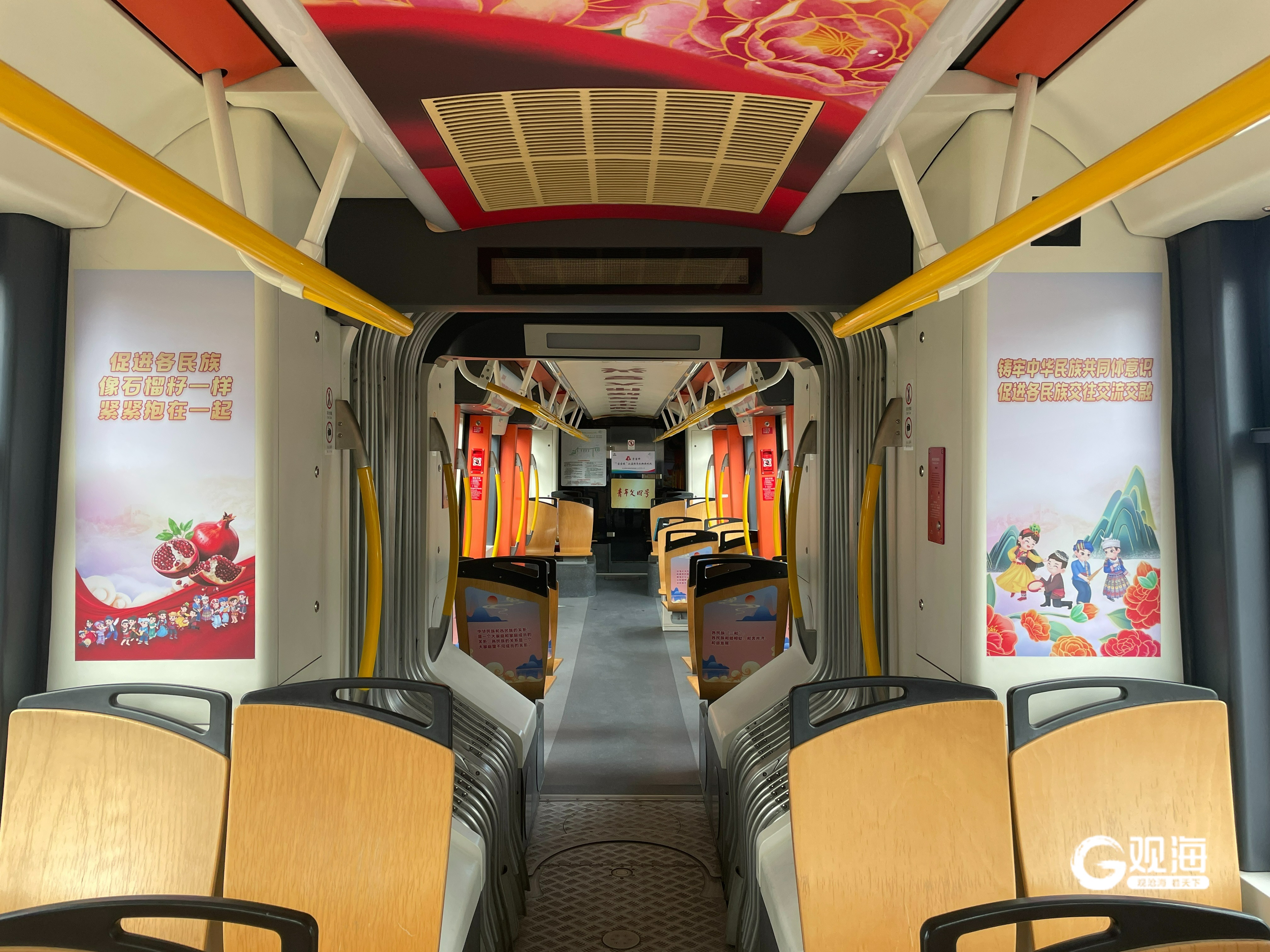 乘客王女士是在青岛生活了多年的少数民族,得知城阳有轨电车开通了民族团结主题列车,特意前来乘车打卡。她表示:“56个民族是一家。车里民族团结的文化氛围、装饰颇具感染力,值得点赞!”
