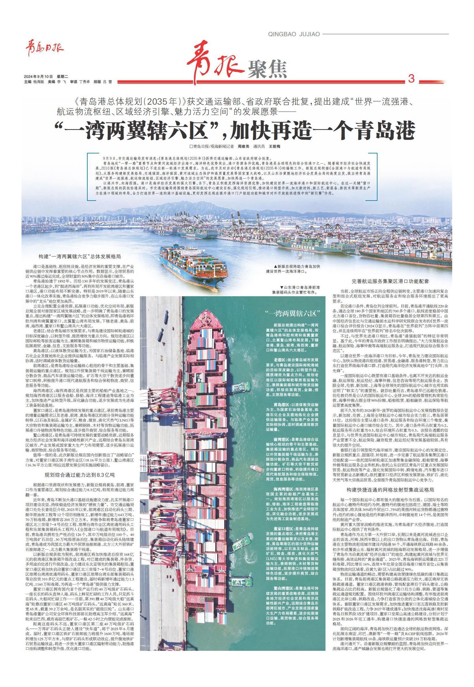 以港兴市,向海图强。港口是海洋经济发展的强大引擎,当下,青岛正积极发挥海洋资源优势,加快建设世界一流海洋港口和国际航运中心。在这一关键“窗口期”,新版总规的获批恰逢其时。市交通运输局将围绕青岛国际航运中心建设目标,强化规划引领,推动港口转型升级,加大新材料、新工艺、新装备、新技术等新质生产力在港口领域的布局,全力打造世界一流的港口基础设施,更好发挥总规在提升港口门户枢纽功能和城市对外开放能级进程中的“新引擎”作用。