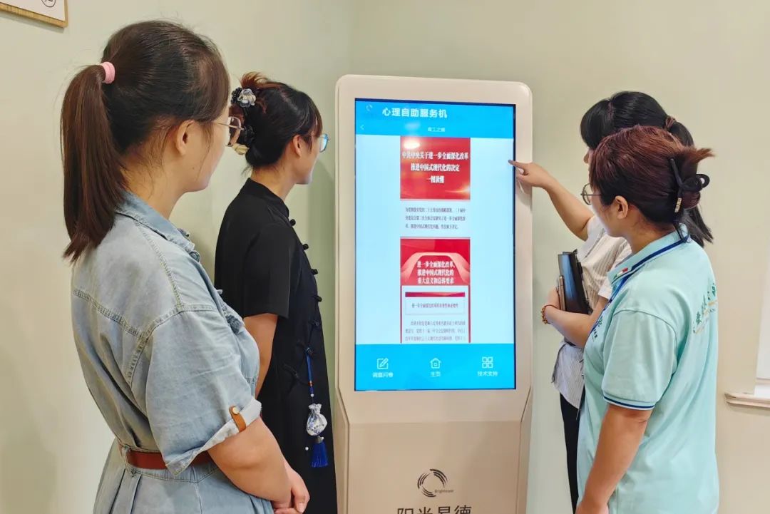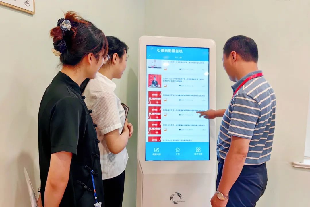 设备体验环节中,湛疗党员、干部协助劳模体验服务站设备设施,并与劳模共同使用了心理自助服务机学习党的二十届三中全会有关内容,学习过程中,劳模结合实际与湛疗党员、干部交流了工作经验,大家受益匪浅。