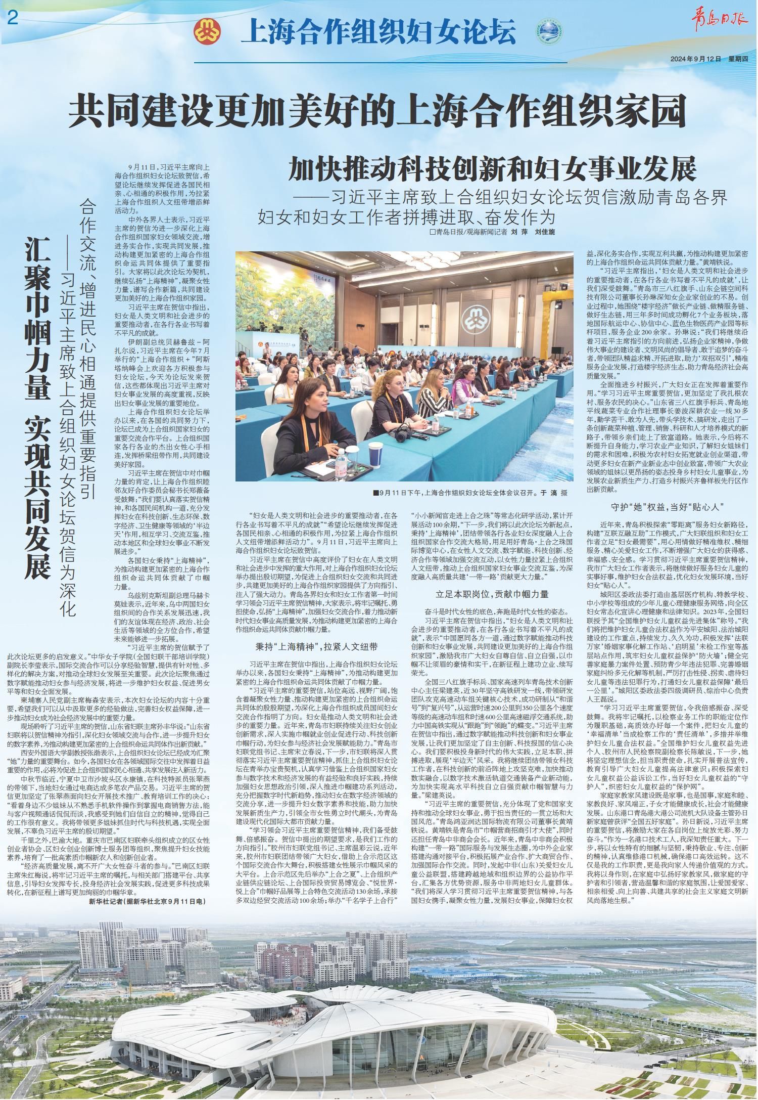 ——习近平主席致上合组织妇女论坛贺信激励青岛各界妇女和妇女工作者拼搏进取、奋发作为